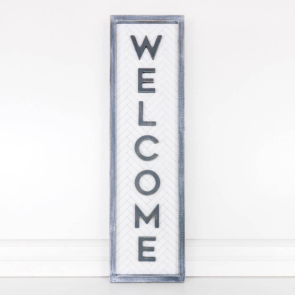 - Combination of white and grey displaying the message of "Welcome" on both sides.
