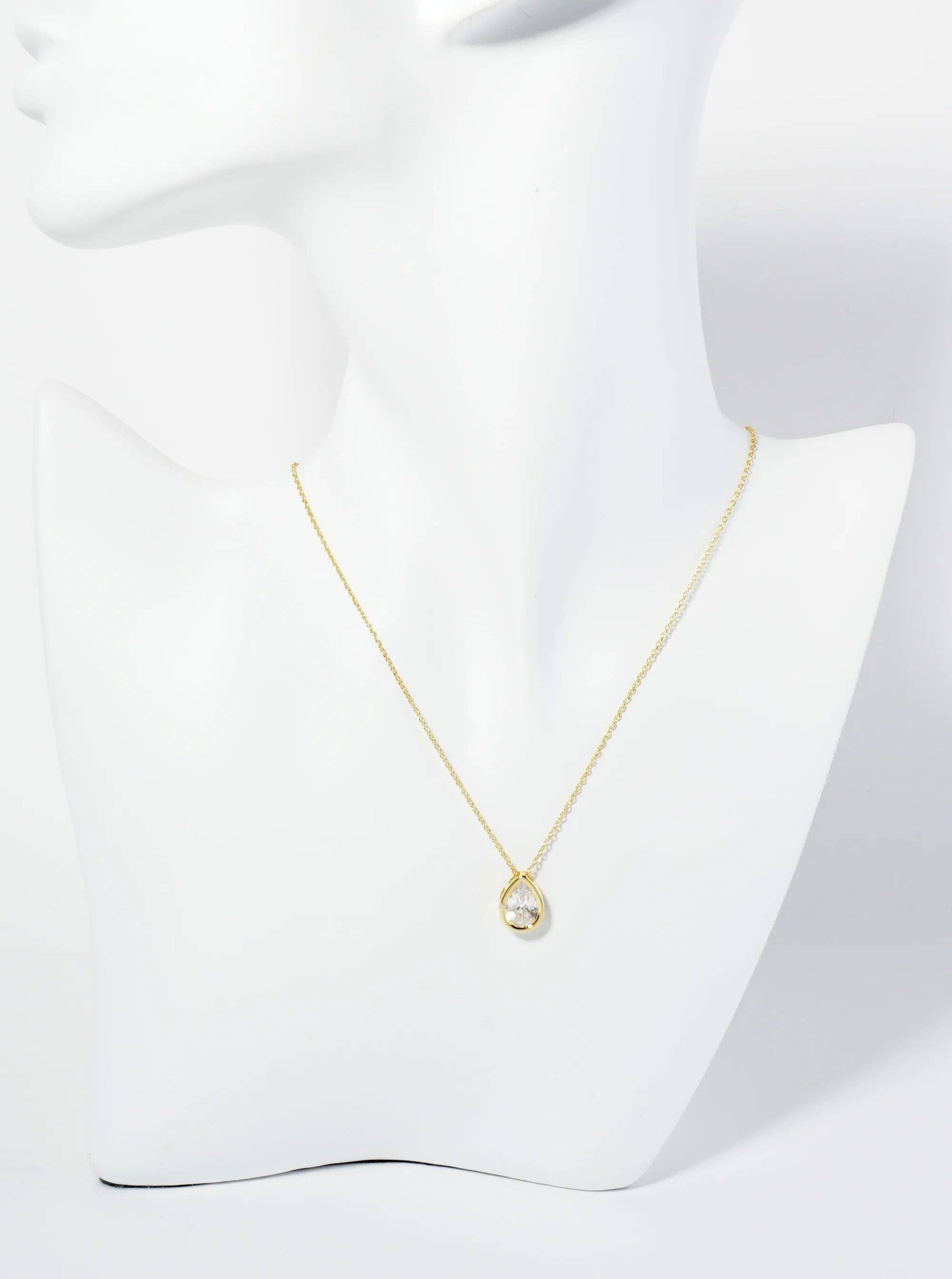 Bezel Set CZ Teardrop Pendant Necklace