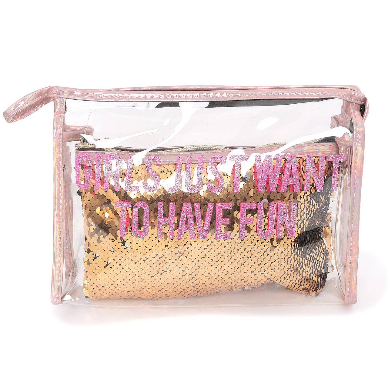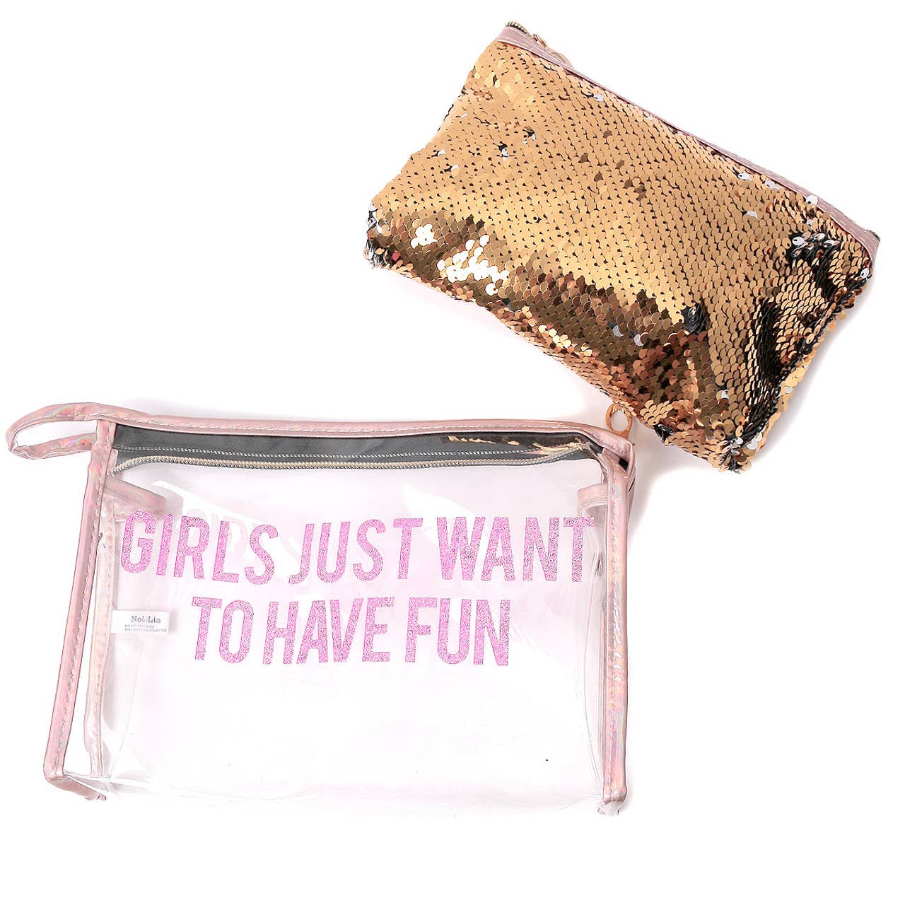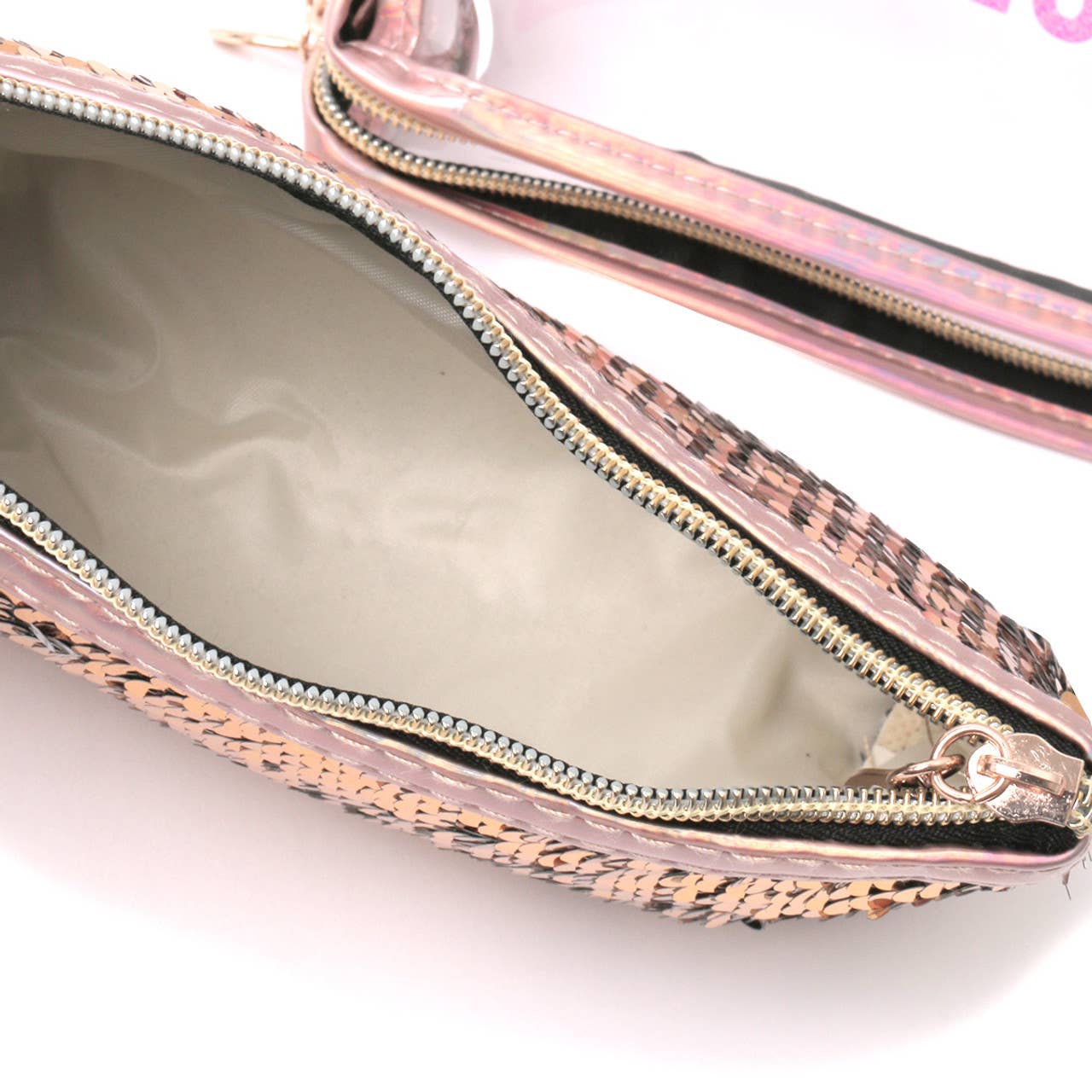 2 Pc Girls Sequin Cosmetic Bag Set: Gold