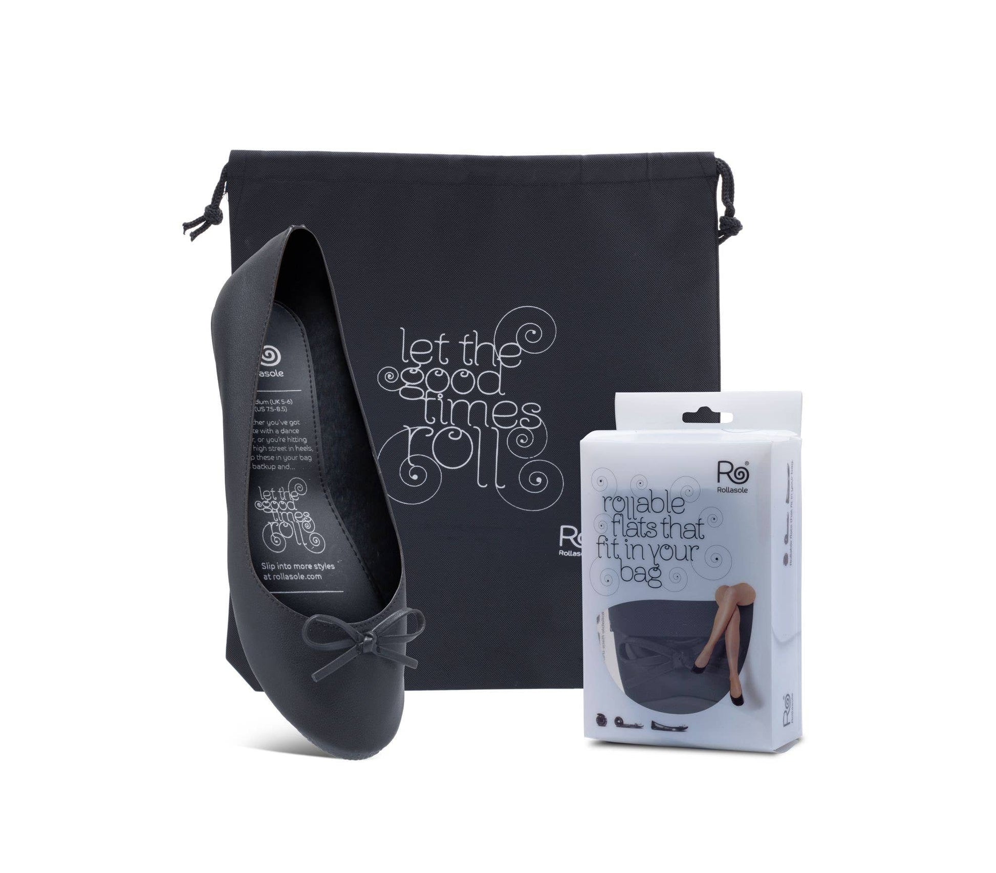 These classic little black flats are a must-have for every bag. The perfect emergency shoe to get you from point A to point B! Timeless in style, they’re ready to slip out, unroll and complement almost any outfit.