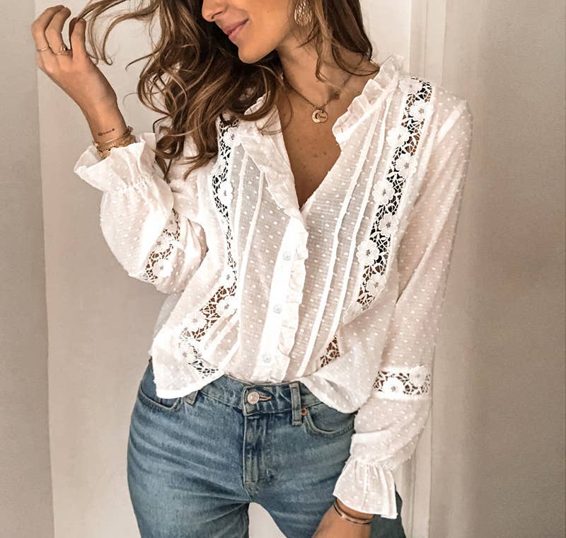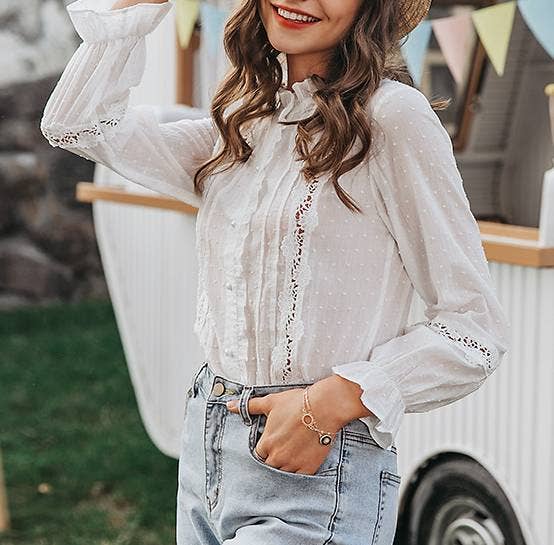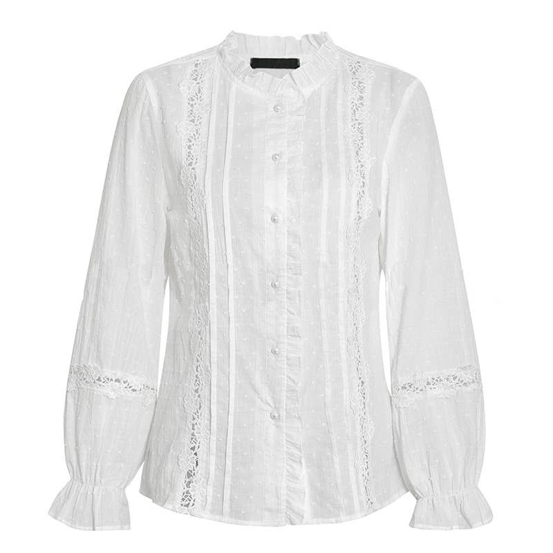 White Bell Sleeves Cotton-Paneled Shirt