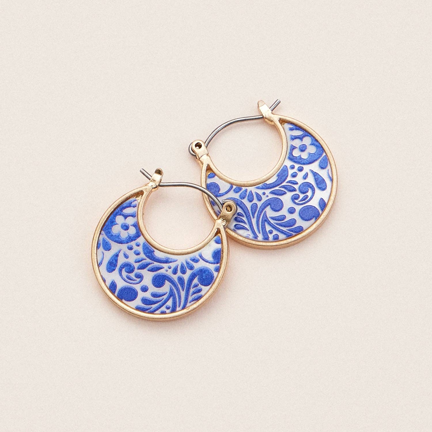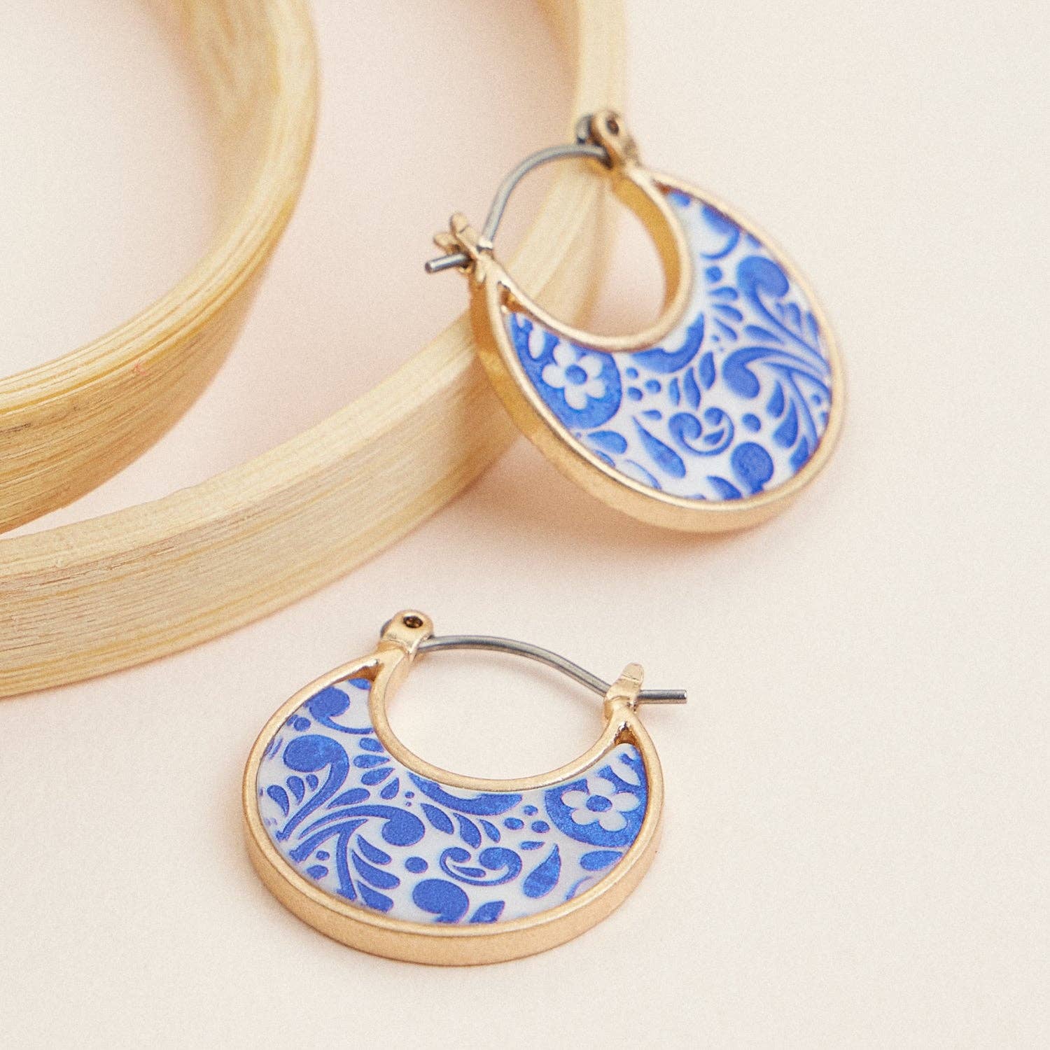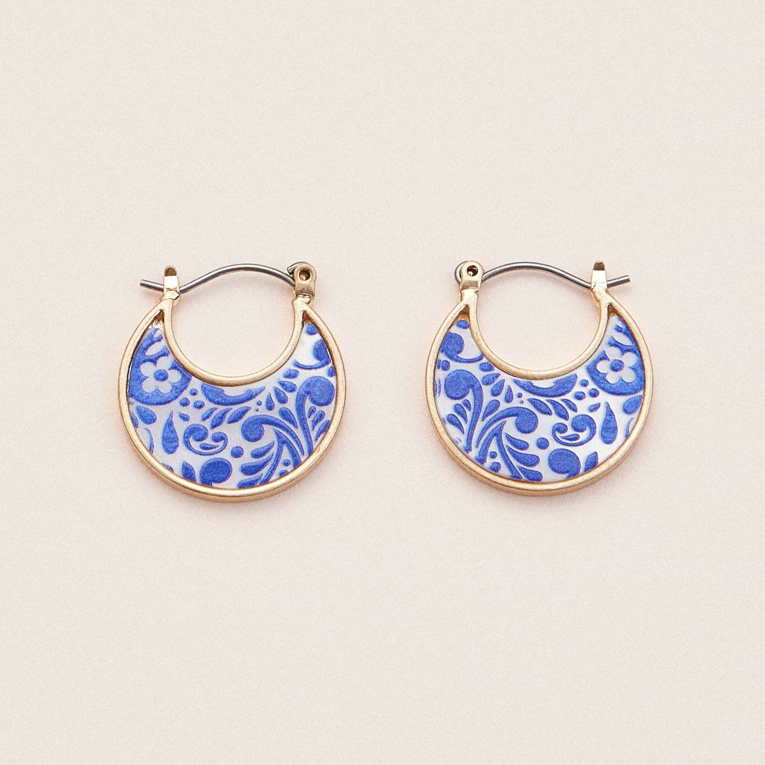 Boho-Chic Gold and Blue Mother of Pearl Floral Huggies