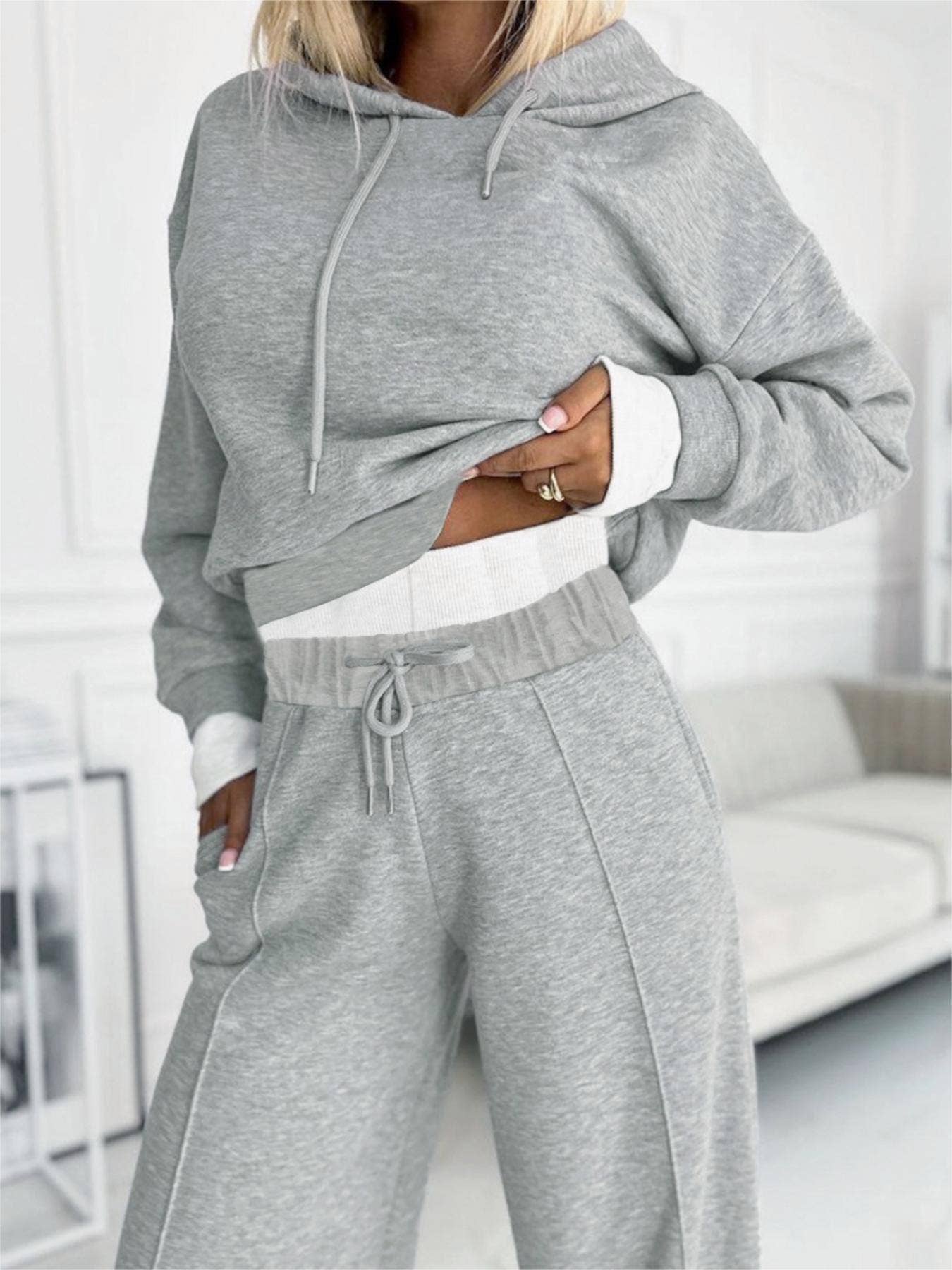 - Cropped Sweatshirt with Wide Leg Drawstring Pants