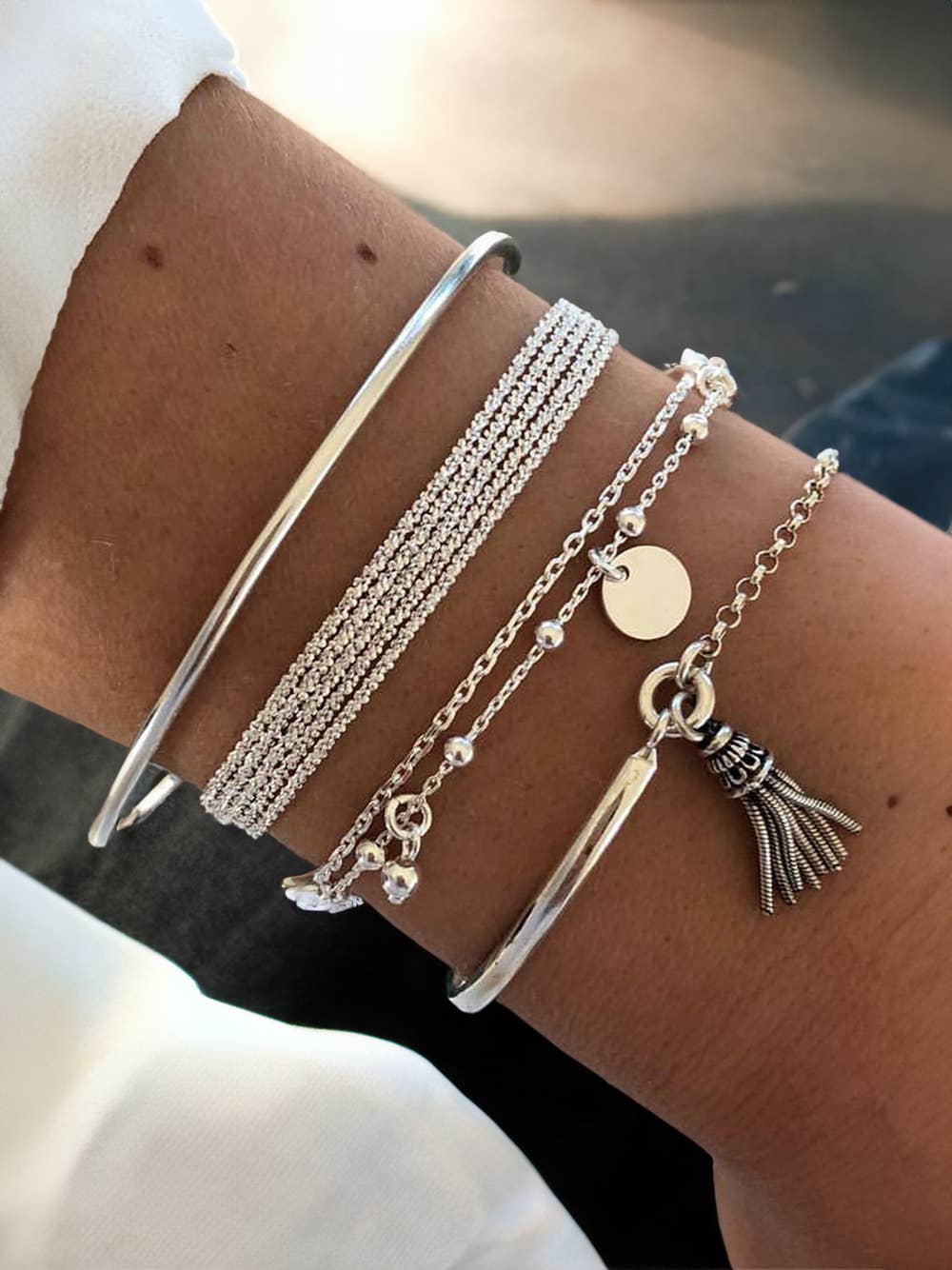 SALE Chain Disc Tassel Pendant Silvery Bracelet Set: Silver