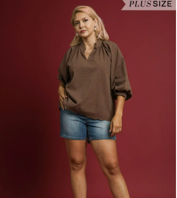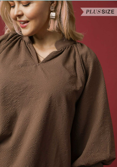 Chocolate Textured Scallop Hem Blouse