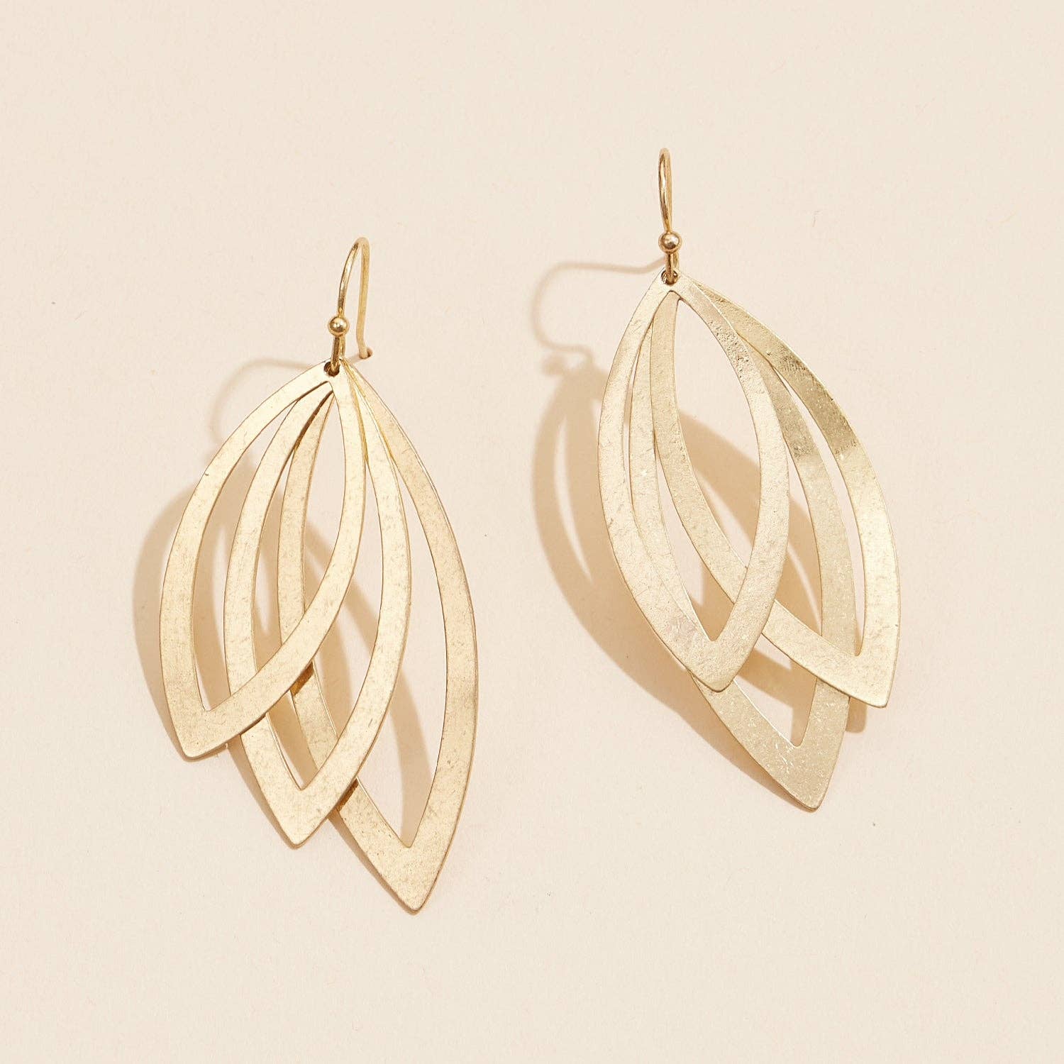 Gold Tone Elegant Layered Leaf Metal Earrings
