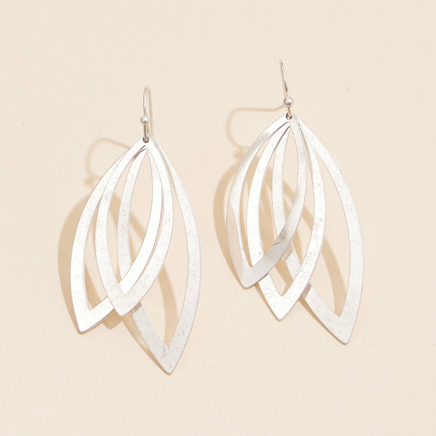 Silver Tone Elegant Layered Leaf Metal Earrings