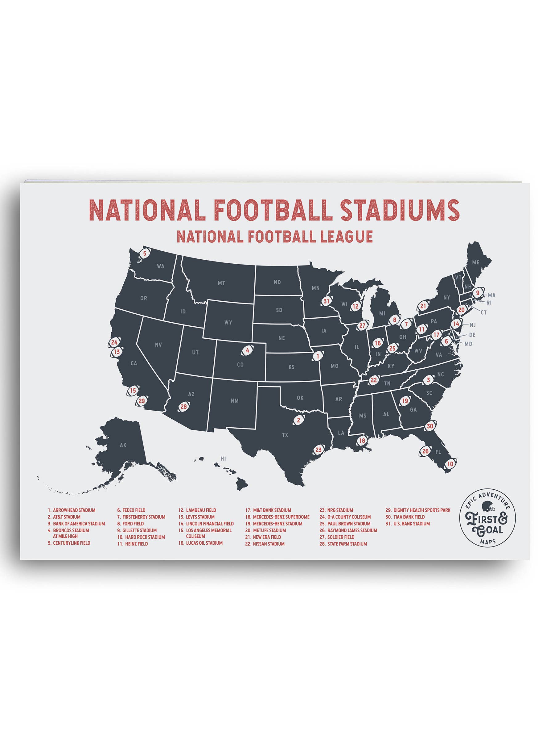 BUCKET LIST GIFT- EXPLORE NFL FOOTBALL STADIUMS Do you know someone who has a love for the NFL? Perhaps they want to visit ALL the NFL football stadiums? Maybe that person is YOU! Mark each stadium off your bucket list as you make your way from coast to coast!
