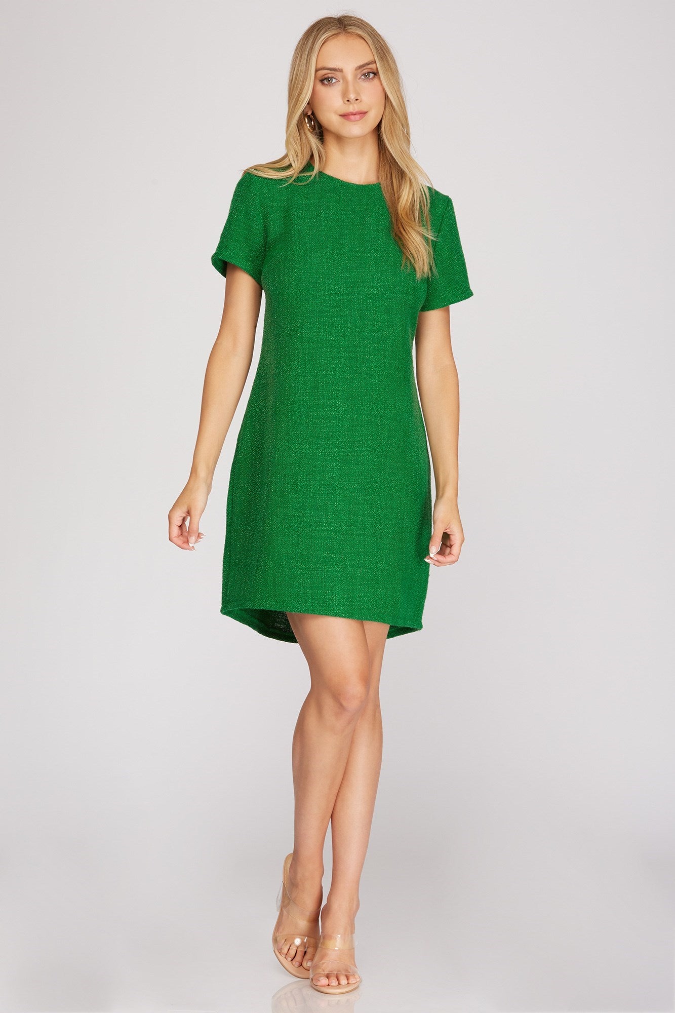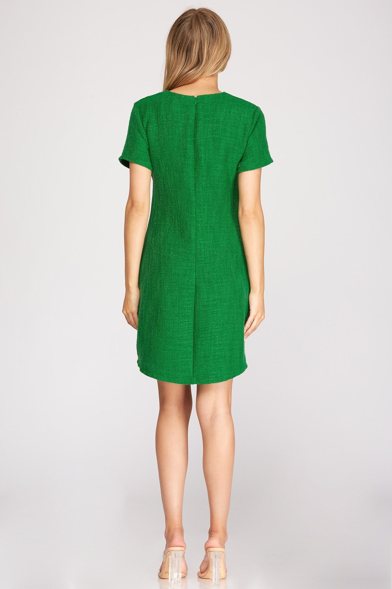 Green Short Sleeve Tweed Mini Dress