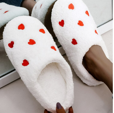 Heart Embroidery Fluffy Slippers