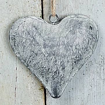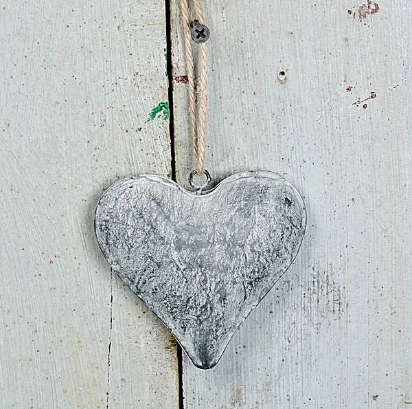 4 inch Metal 3D Heart Ornament-Distressed Gray