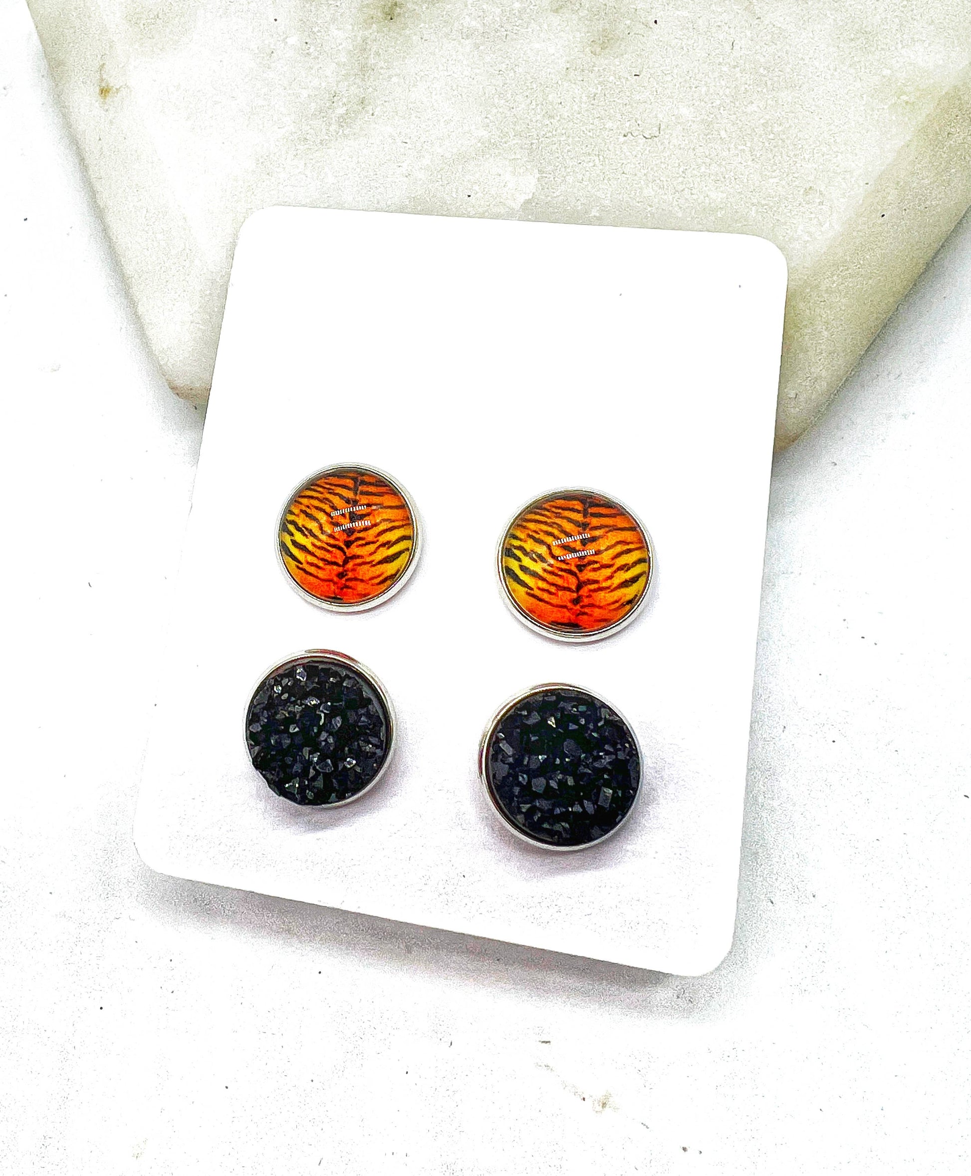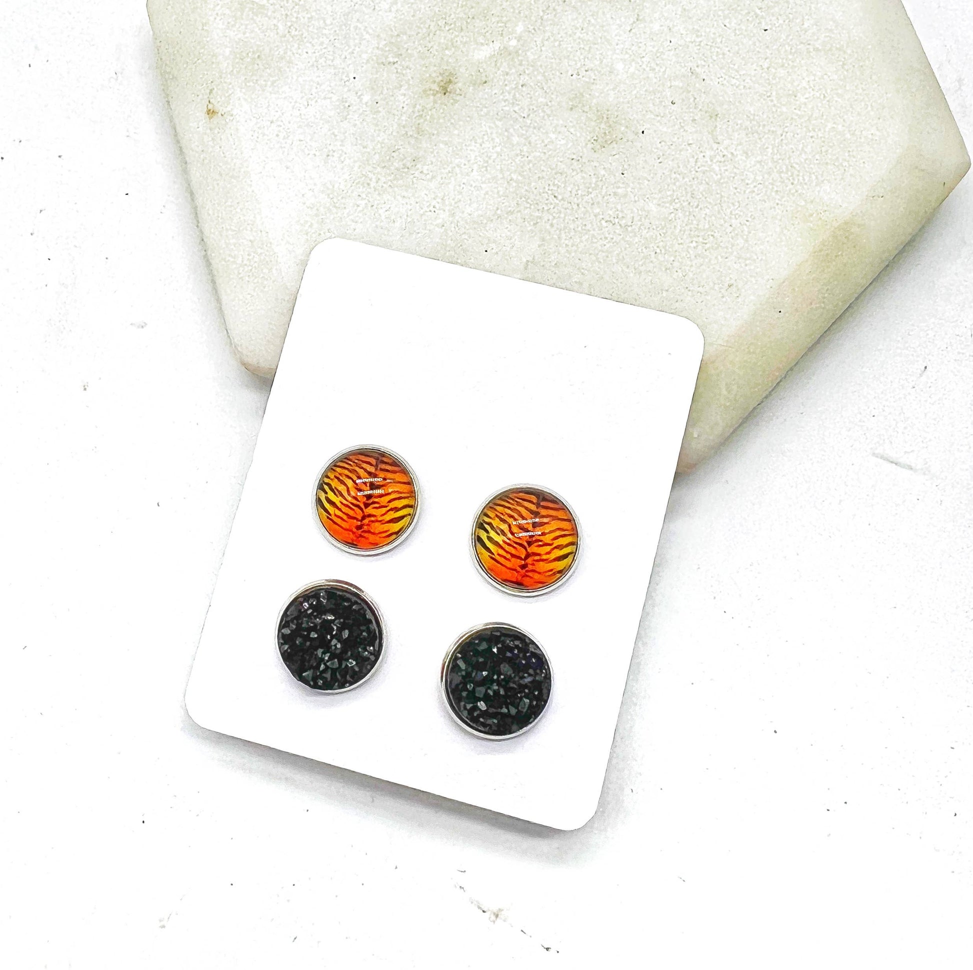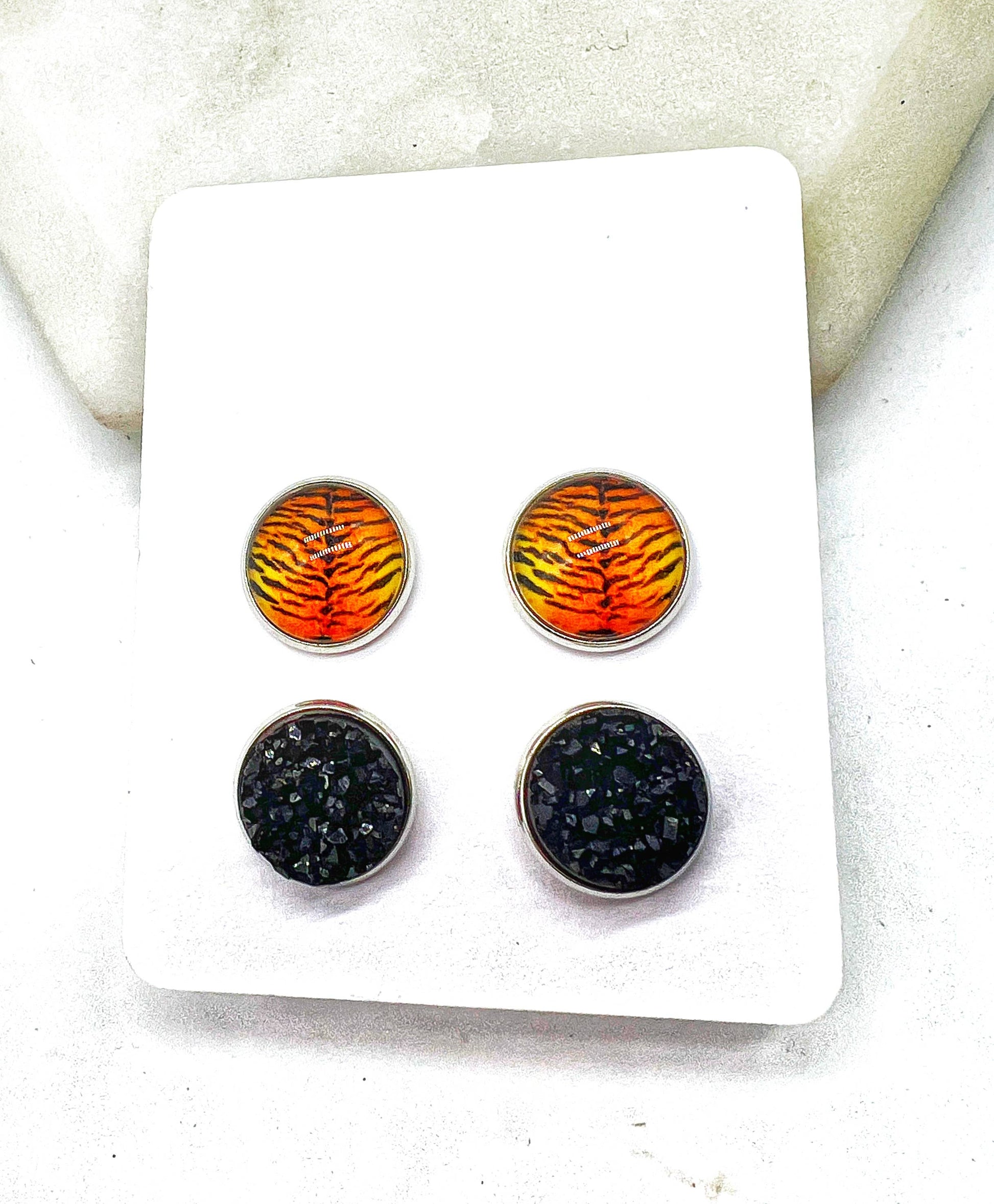 Orange Bengal Tiger Print Druzy Stud Set