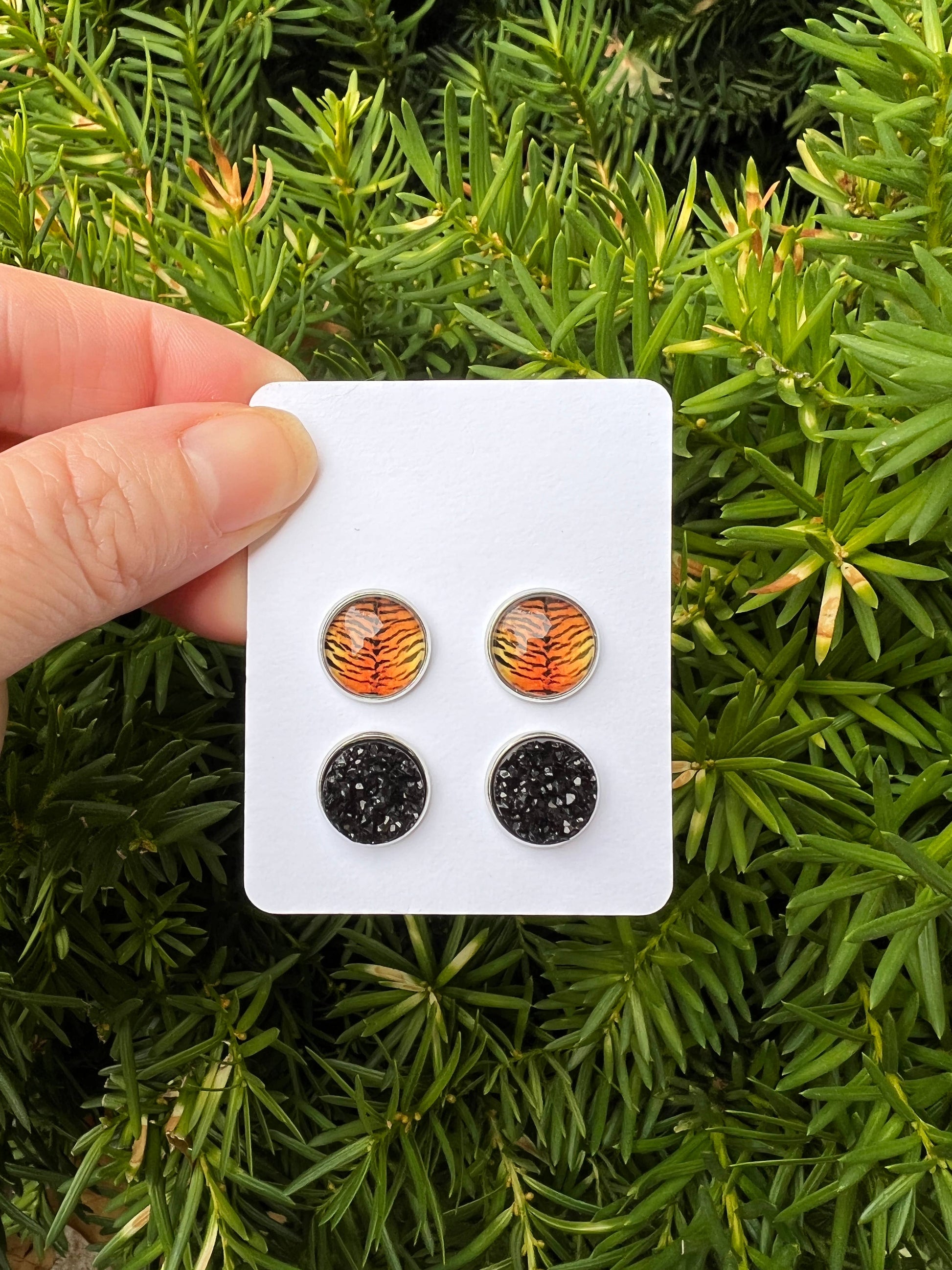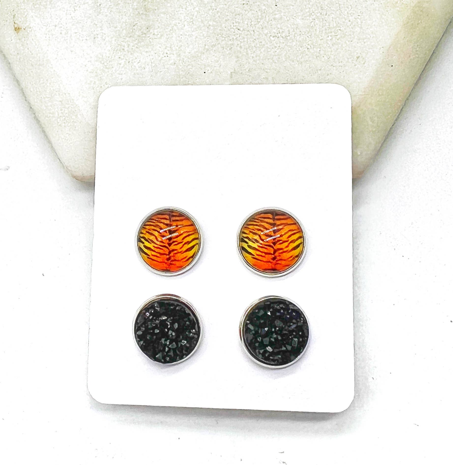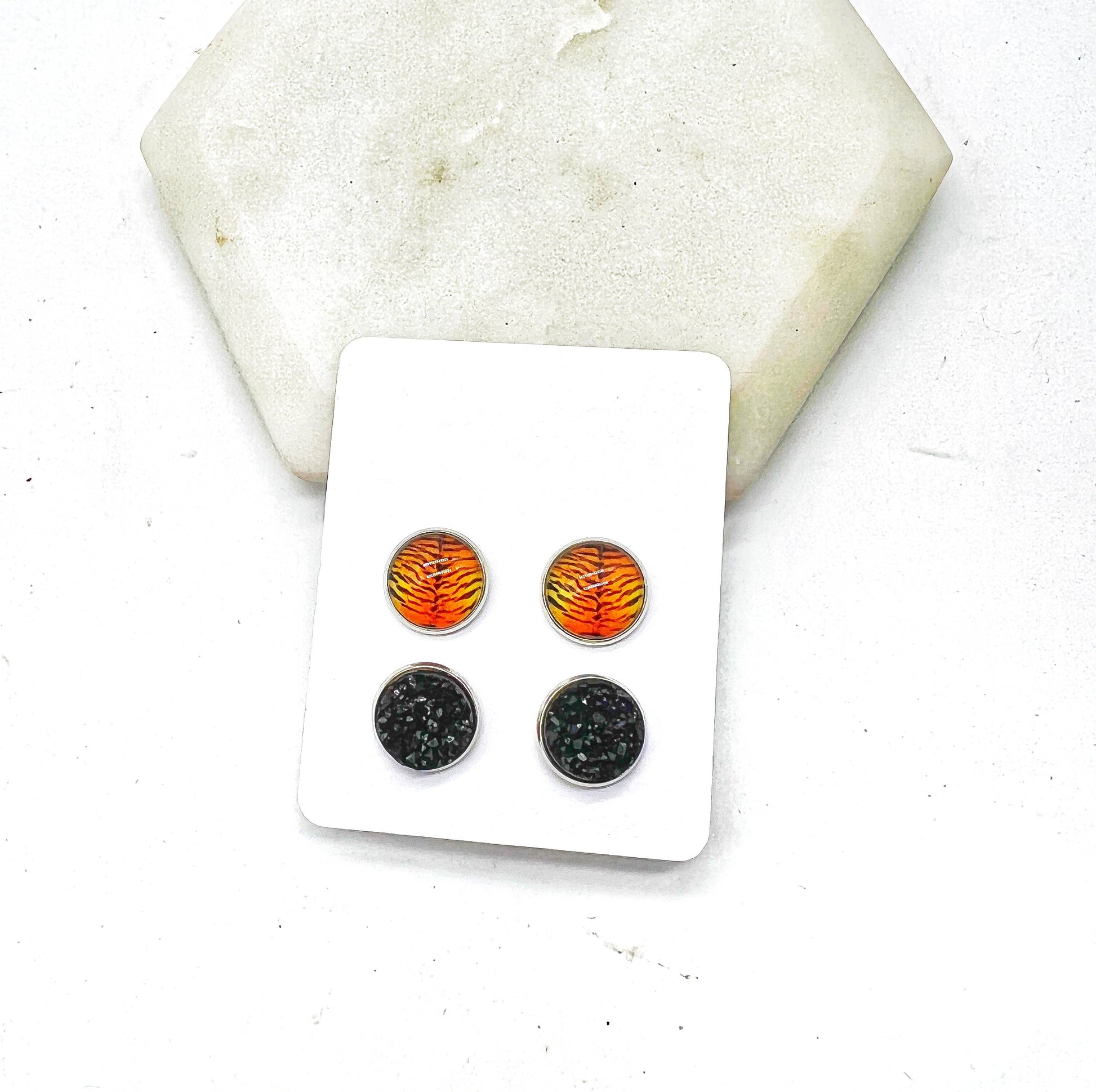 Orange Bengal Tiger Print Druzy Stud Set