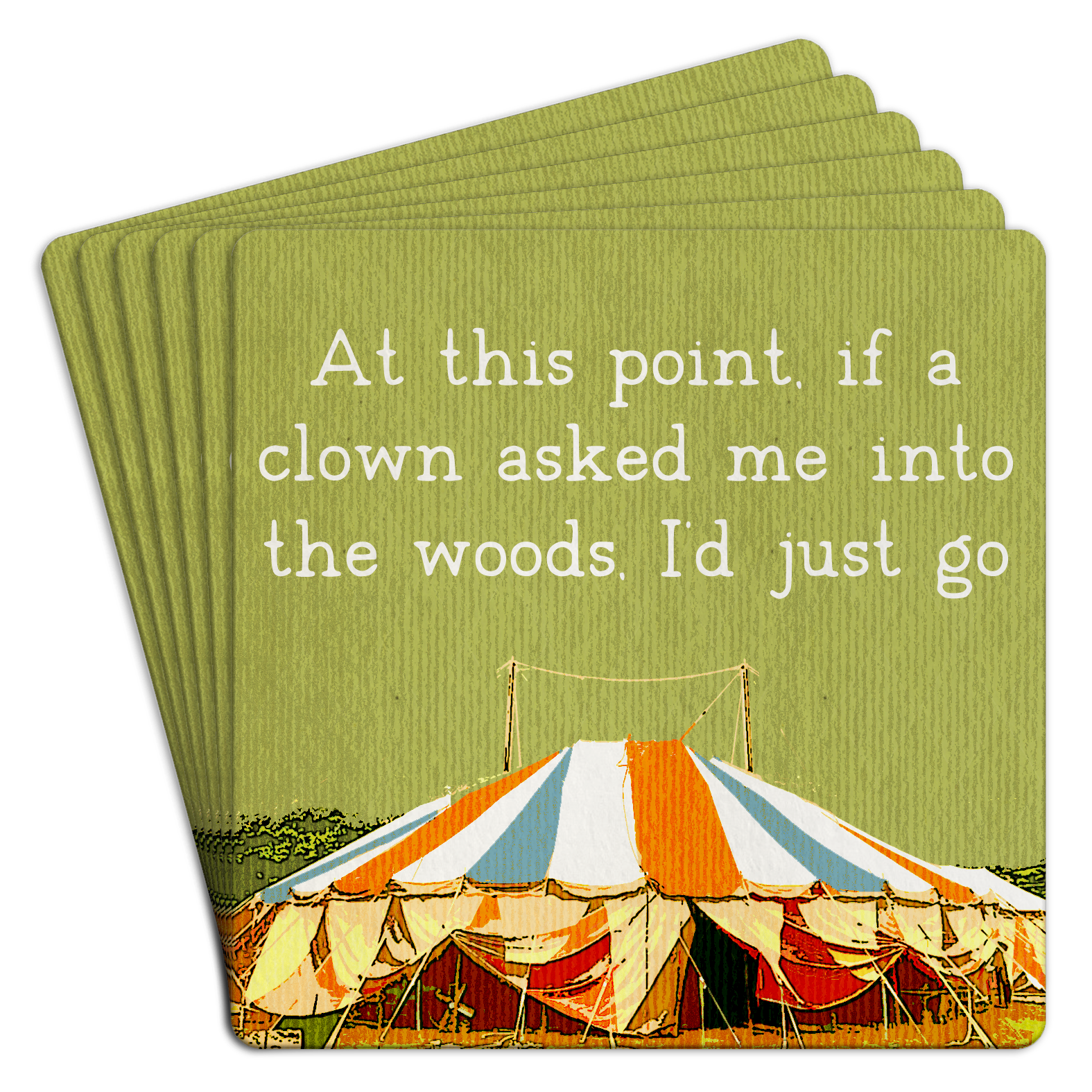 "At this point if a clown asked me into the..." Paper Coaster 6pk