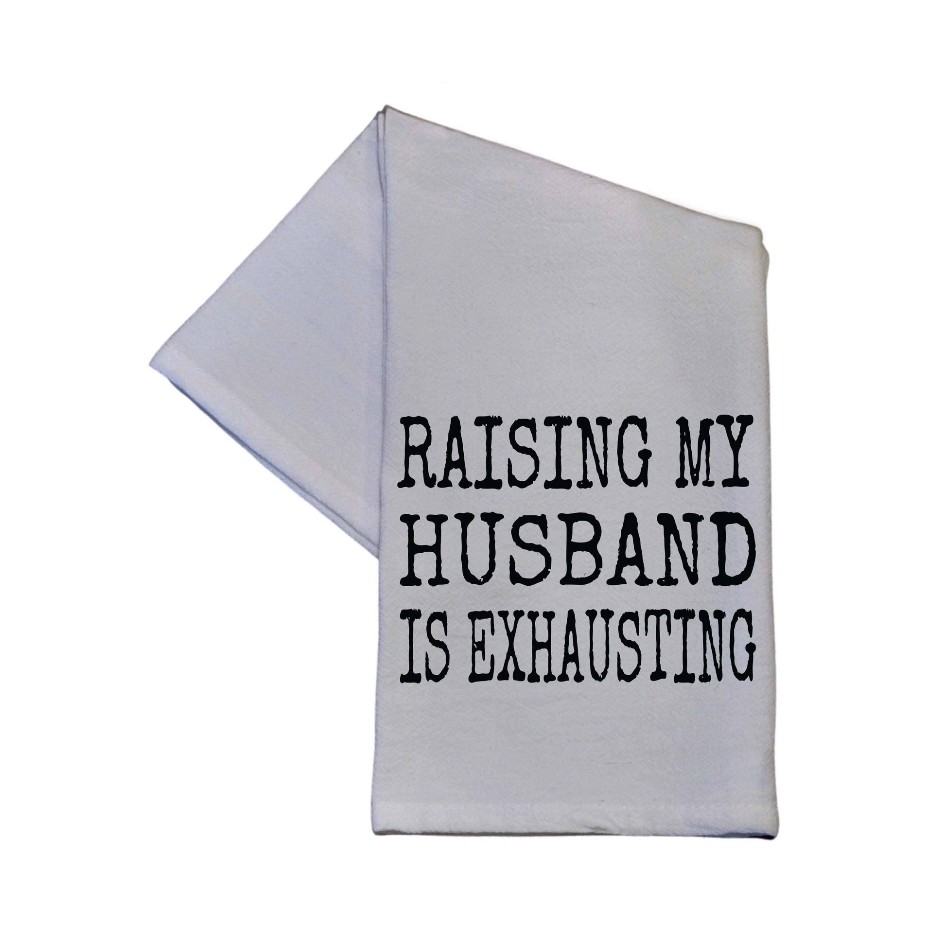 Raising My Husband Is White Cotton Tea Towel - Home Decor