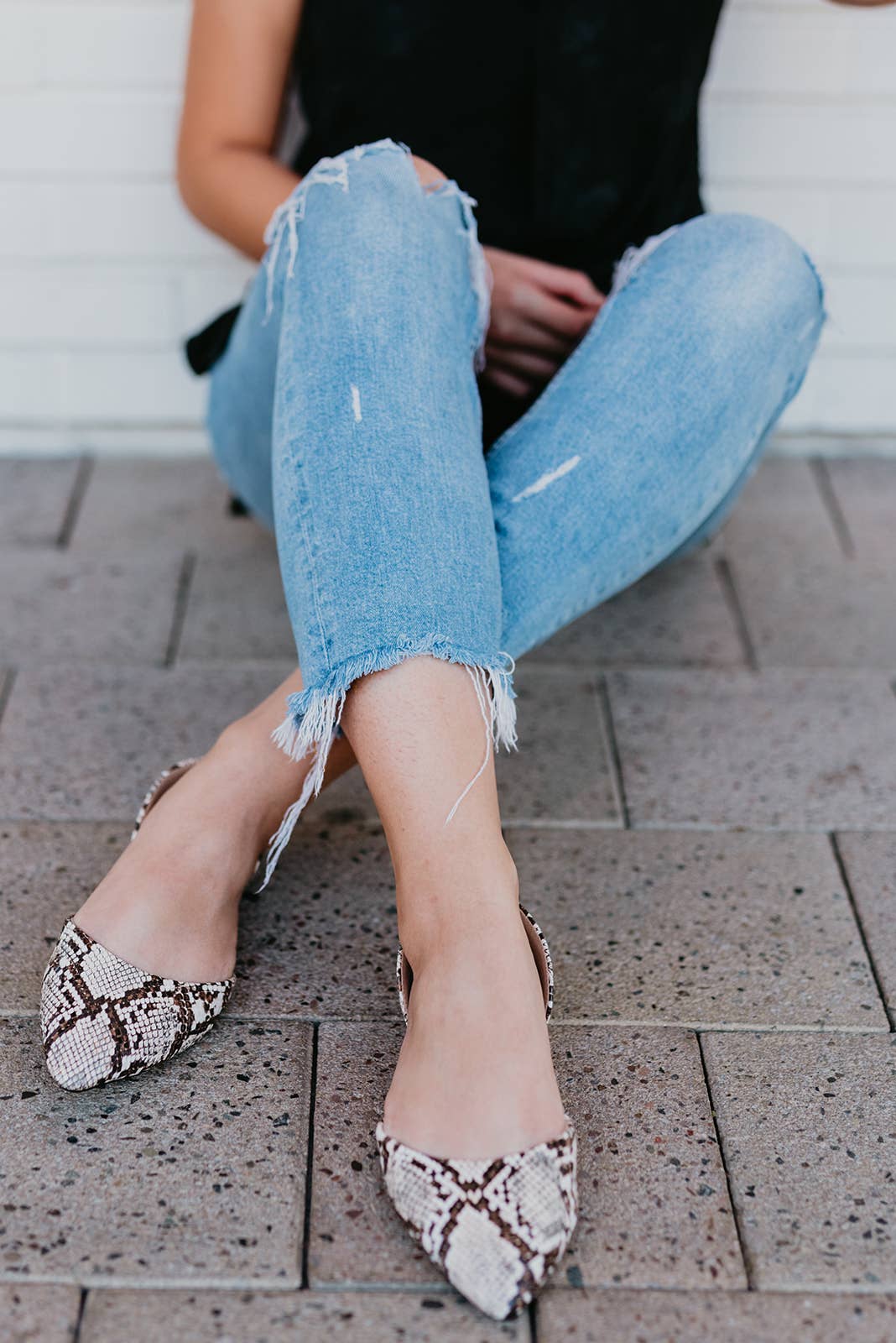 - This feminine d’orsey flat steps into the wild with python print you will love. An evolution from our most comfortable design this is the perfect combination of style and comfort.
