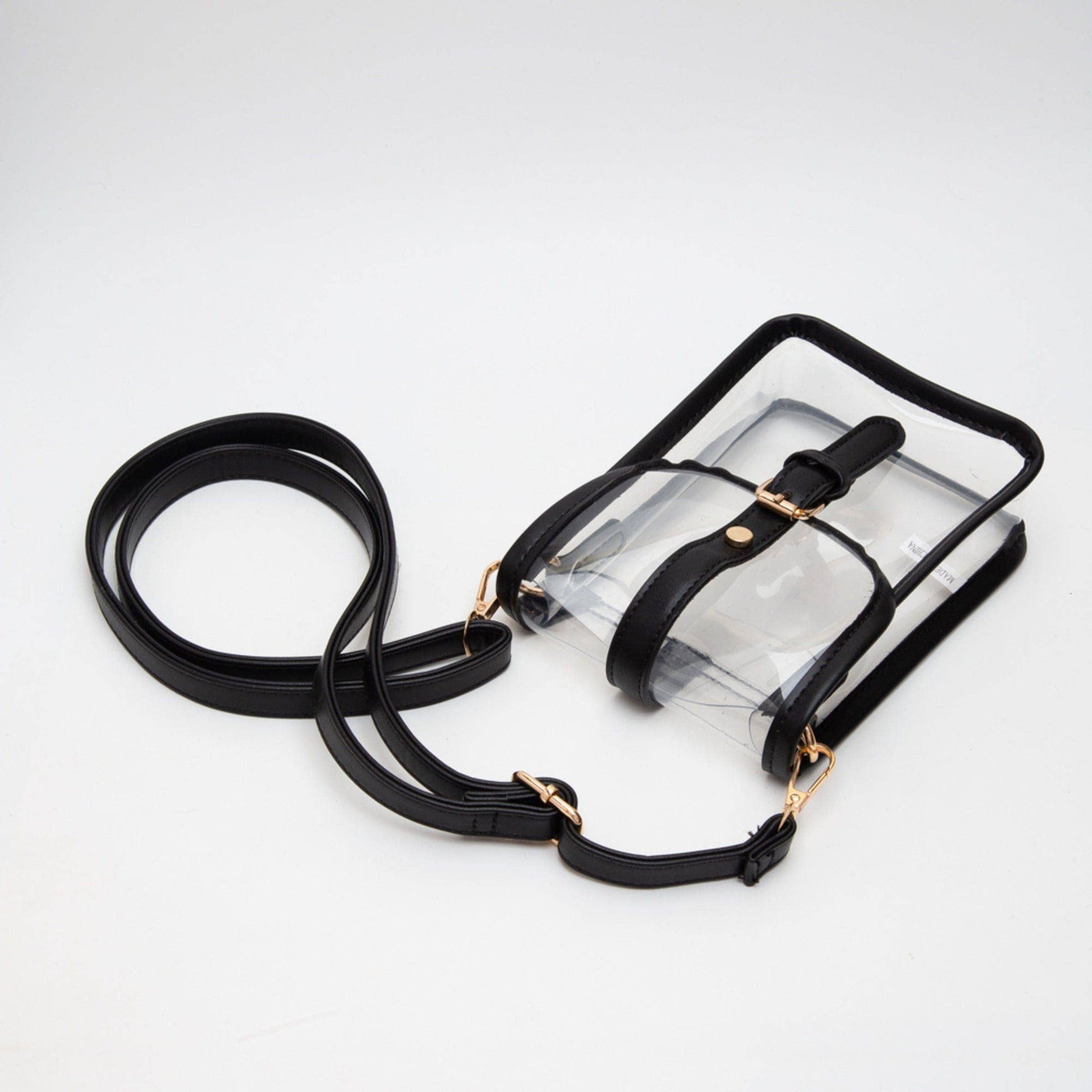 Game Day Clear Buckle Strap Mini Crossbody Bag: Black