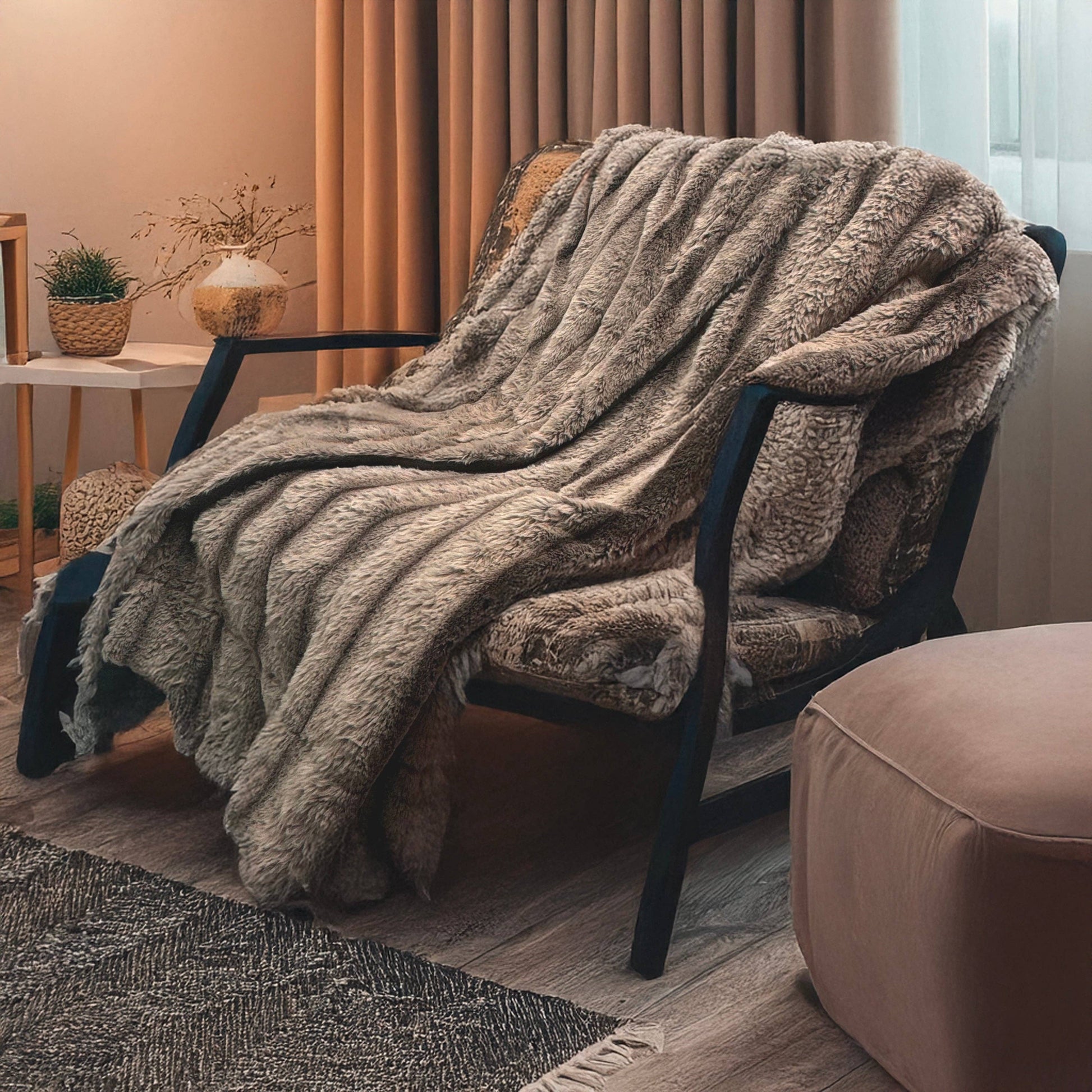 Brown Ultra Soft Faux Rabbit Fur Throw Blanket