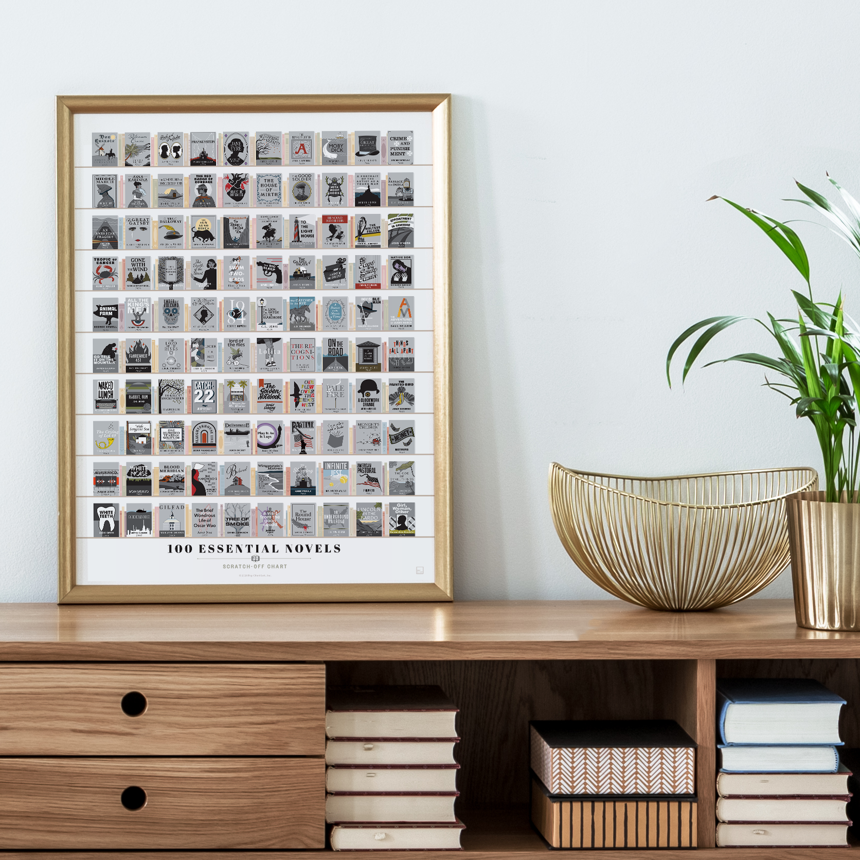100 Essential Novels Scratch-Off Chart | 12" x 16" Print