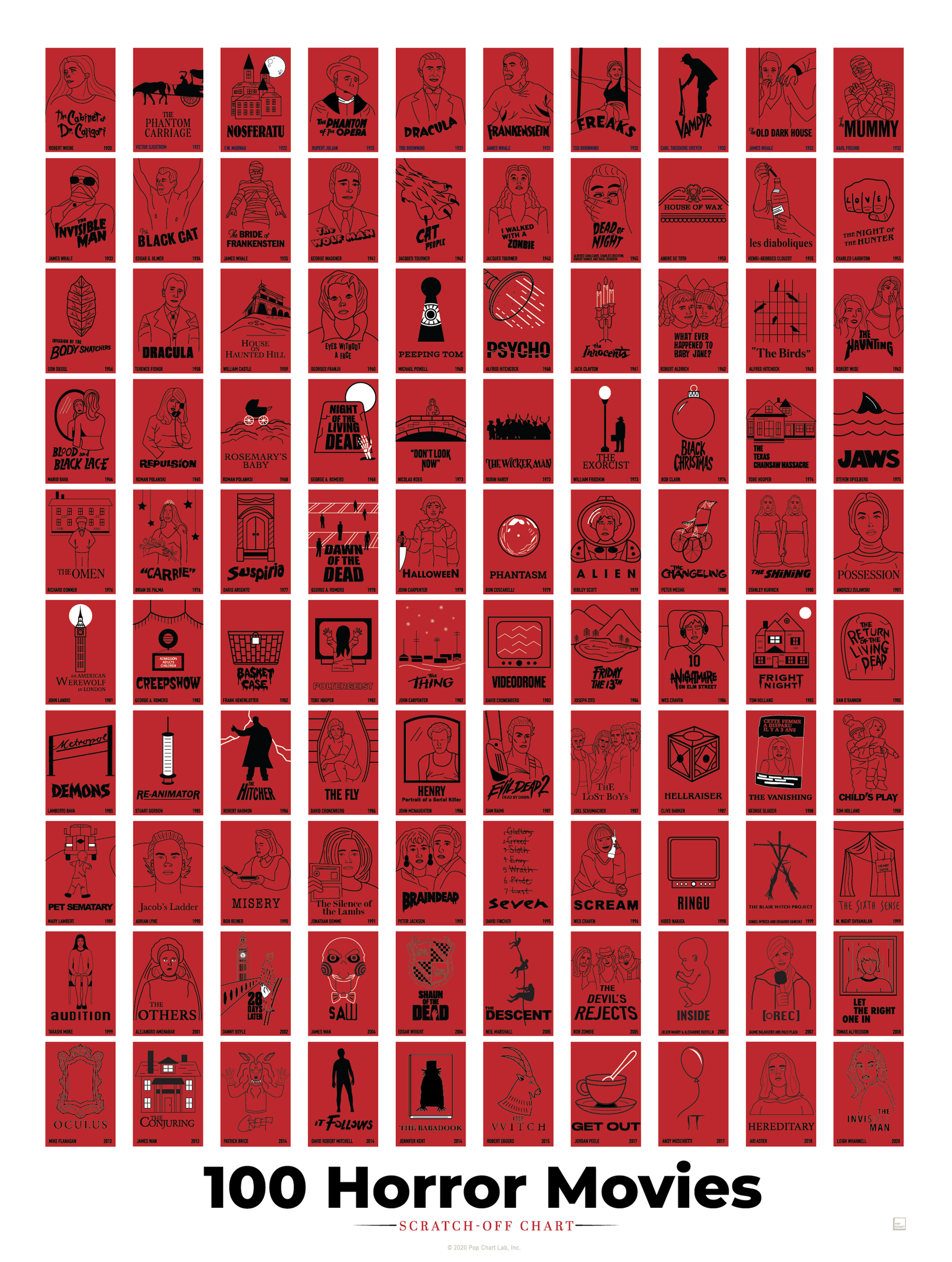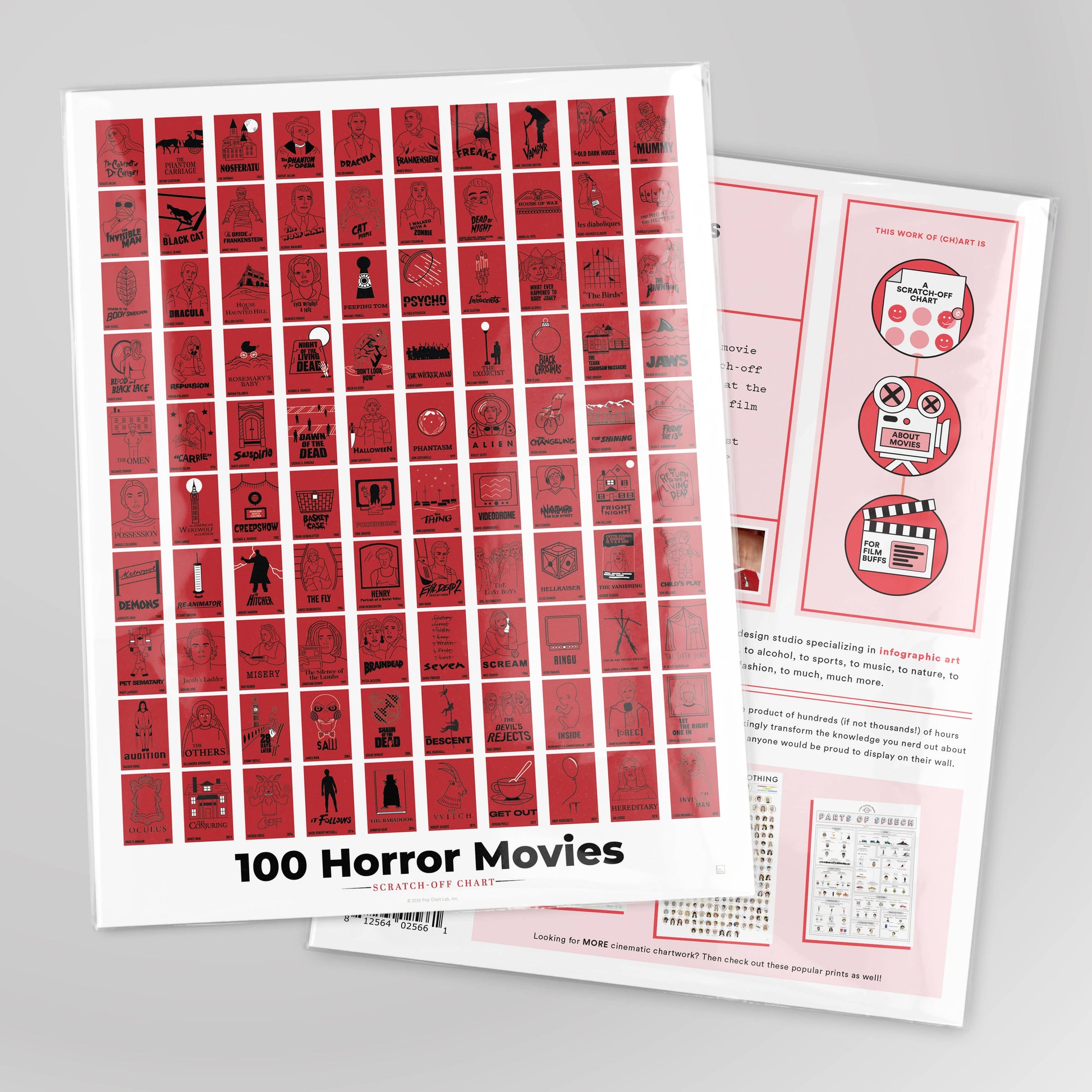 100 Horror Movies Scratch-Off Chart | 12" x 16" Print