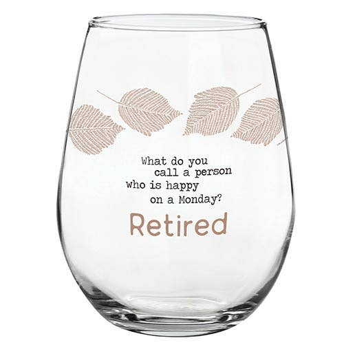 "Happy Monday-Retired" Wine Glass