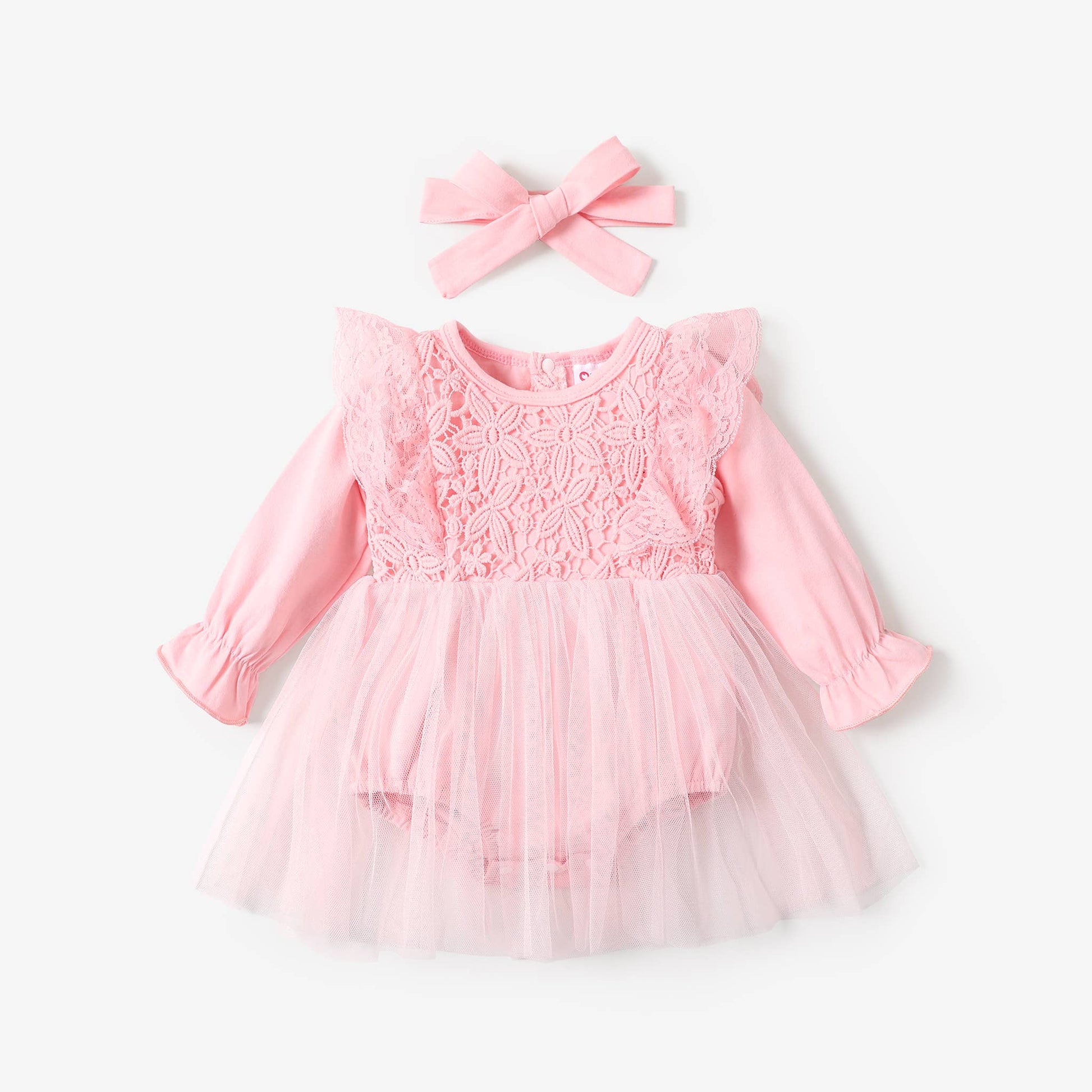 Pink 2pcs Baby Girl Lace and Mesh Romper