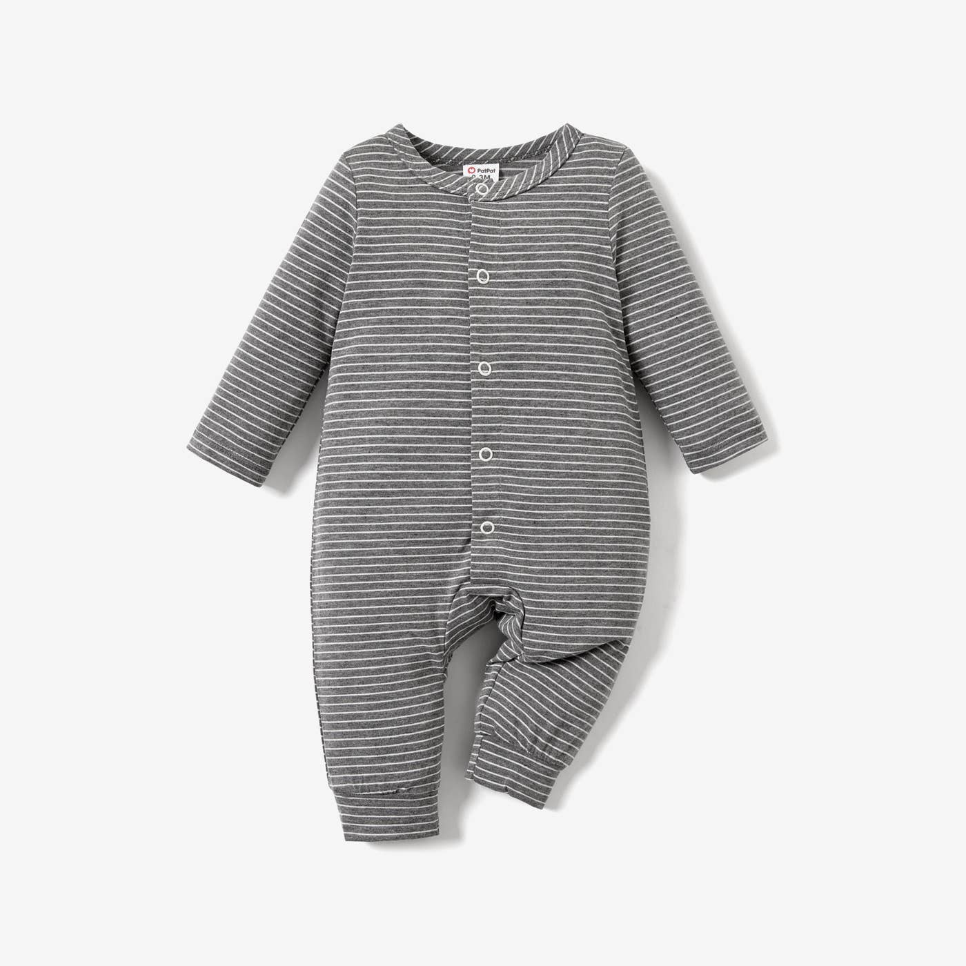 Gray Striped Baby Long Sleeve Romper