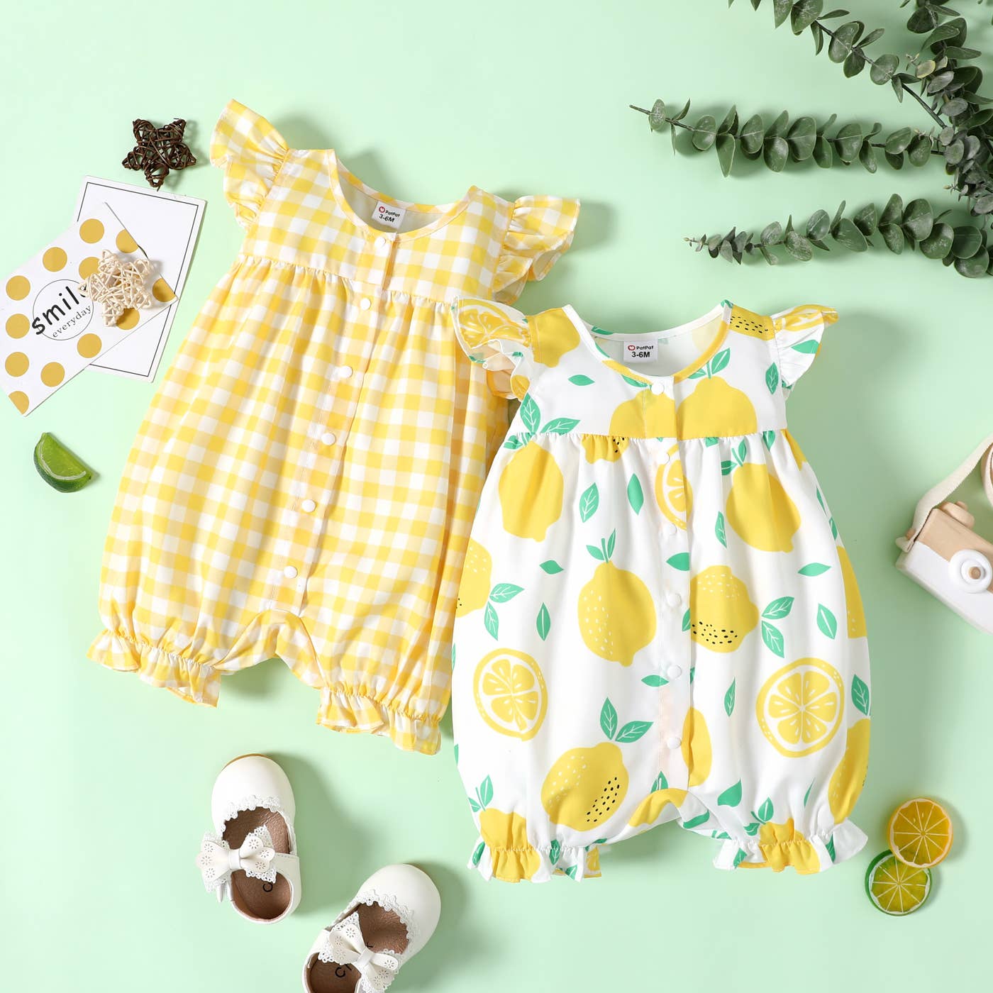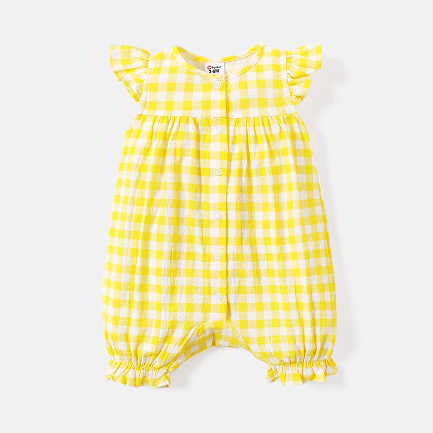 Baby Girl Yellow Gingham Flutter-sleeve Romper