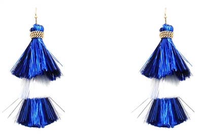 Blue and White Shimmer Tassel Gameday 2" Earring