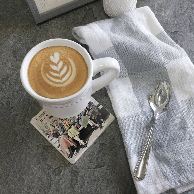 - Coasters absorb condensation on contact, showcasing our coasters' practicality and humor.