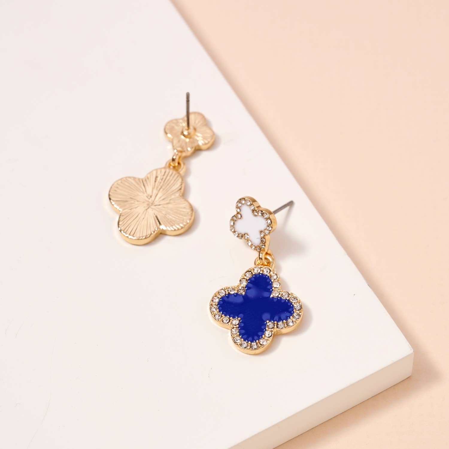 Blue/White Game Day Enamel Flower Dangling Earrings