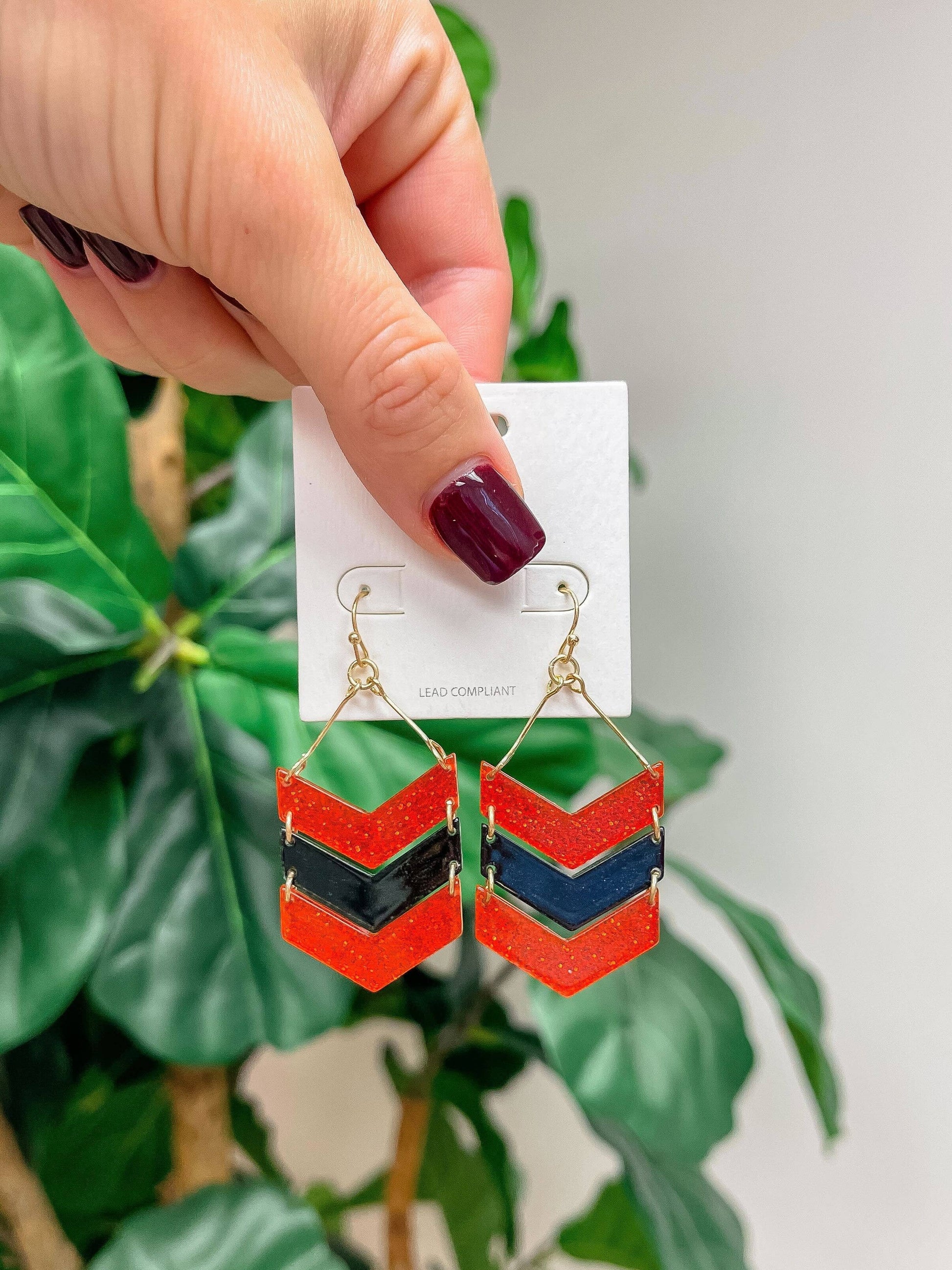 Show your team spirit with these lightweight acrylic dangle earrings!