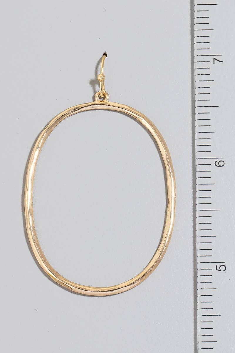 This pair of dangle earrings introduces a stunning hammered metallic oval style. Celebrate the art of accessorizing with this piece that effortlessly encapsulates modern trends.