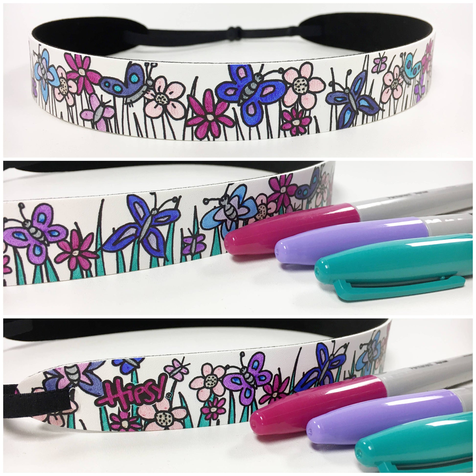 Hipsy Coloring Bands Adjustable No Slip Floral Headband: Hearts & Stripes