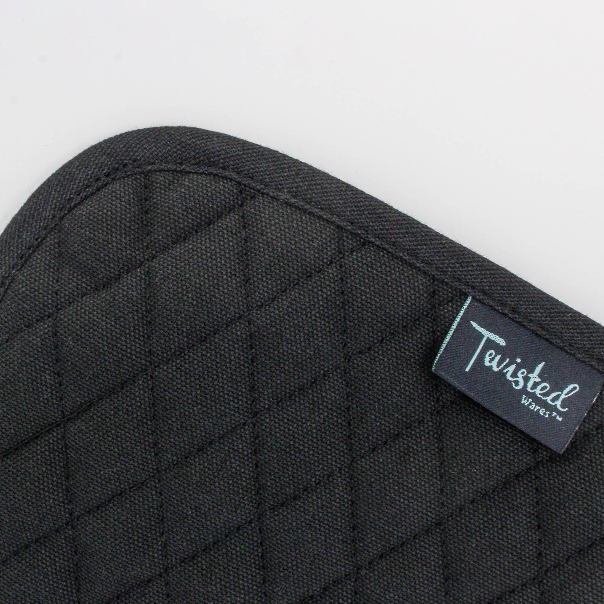 - Measuring a generous 7.5" x 12", this pot holder is crafted from 100% cotton canvas, featuring eco-friendly dyes and a thick batting interior for superior heat resistance.
