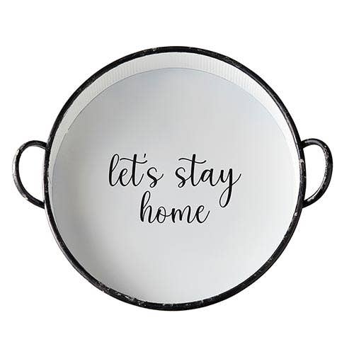 "Lets Stay Home" Large Round Galvanized Metal Tray