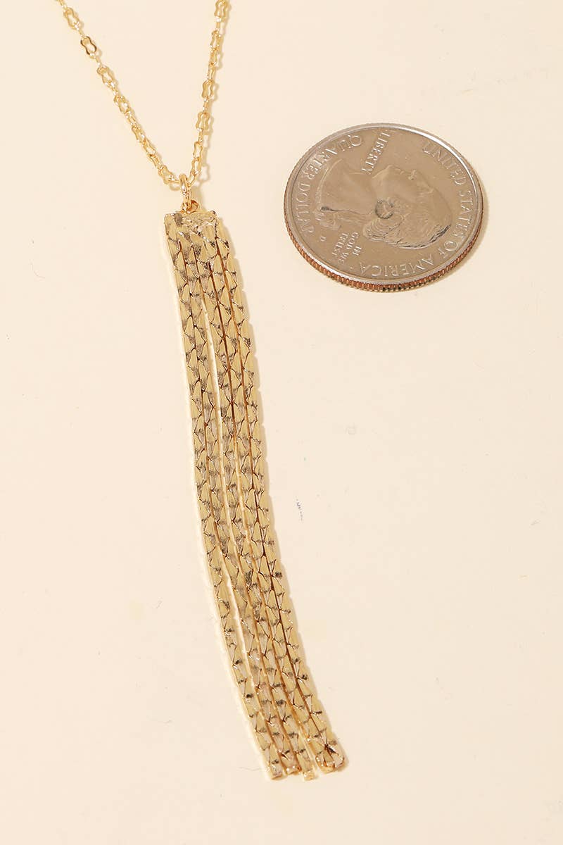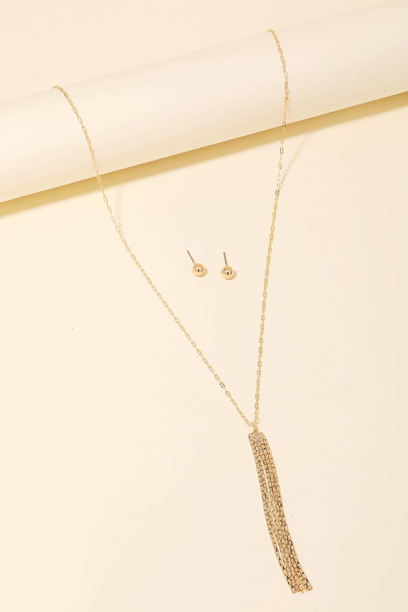 Long Chain Tassel Pendant Necklace Set: Gold Tone