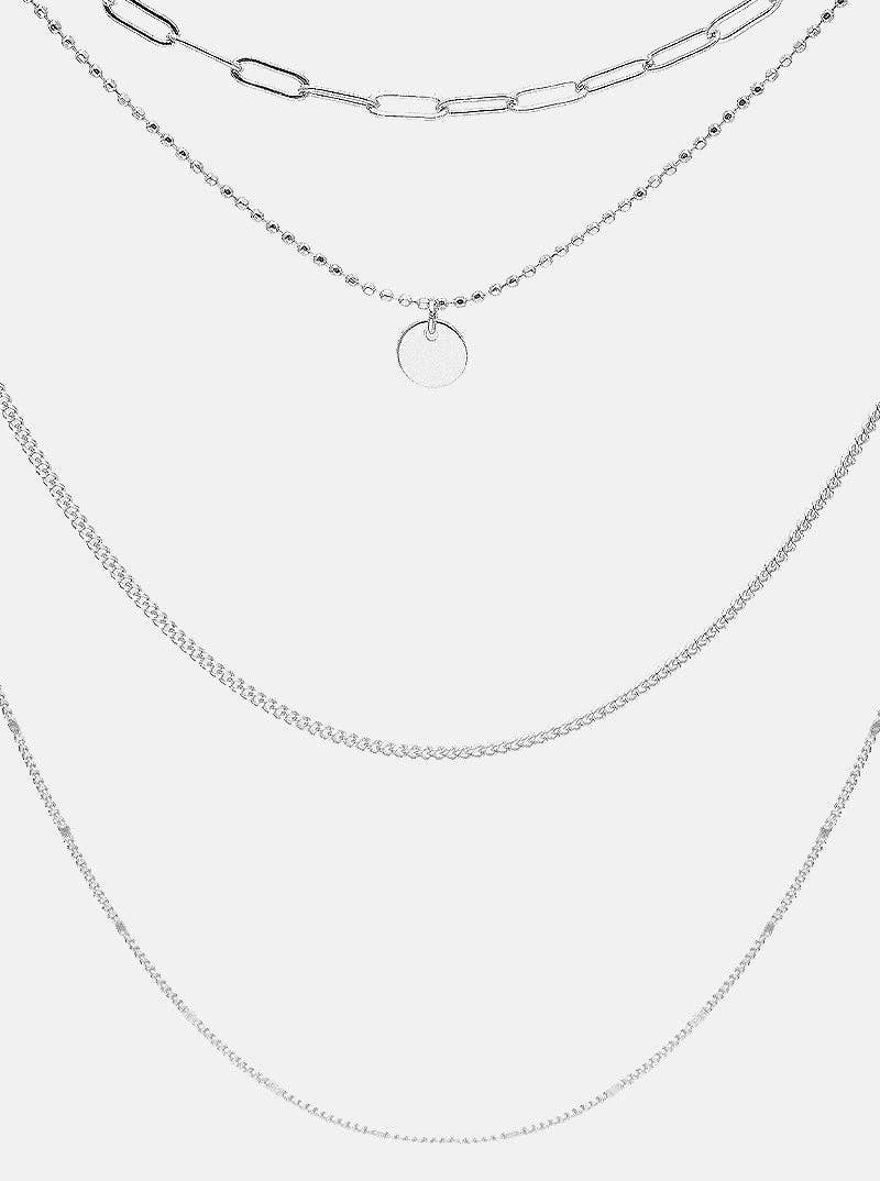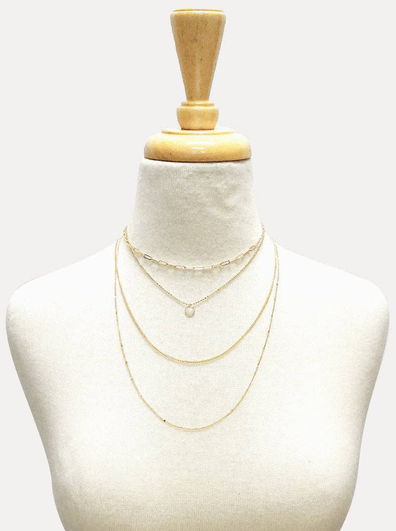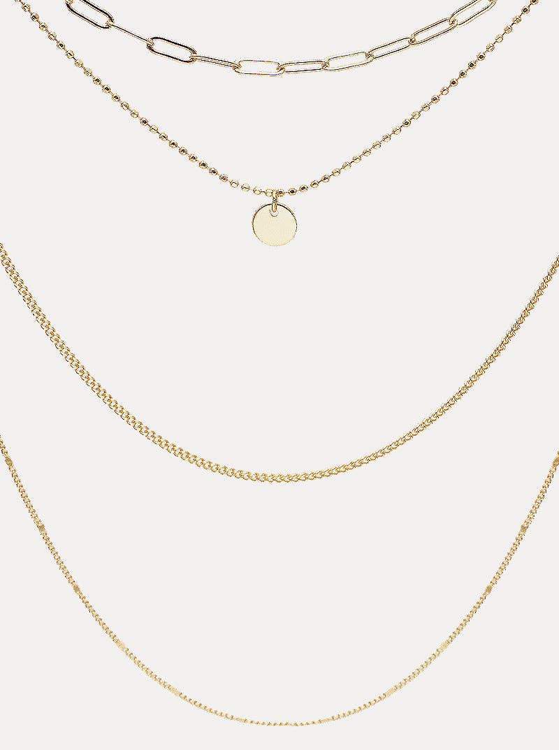 Gold Metal Disc Pendant Multi-Chain Layered Necklace