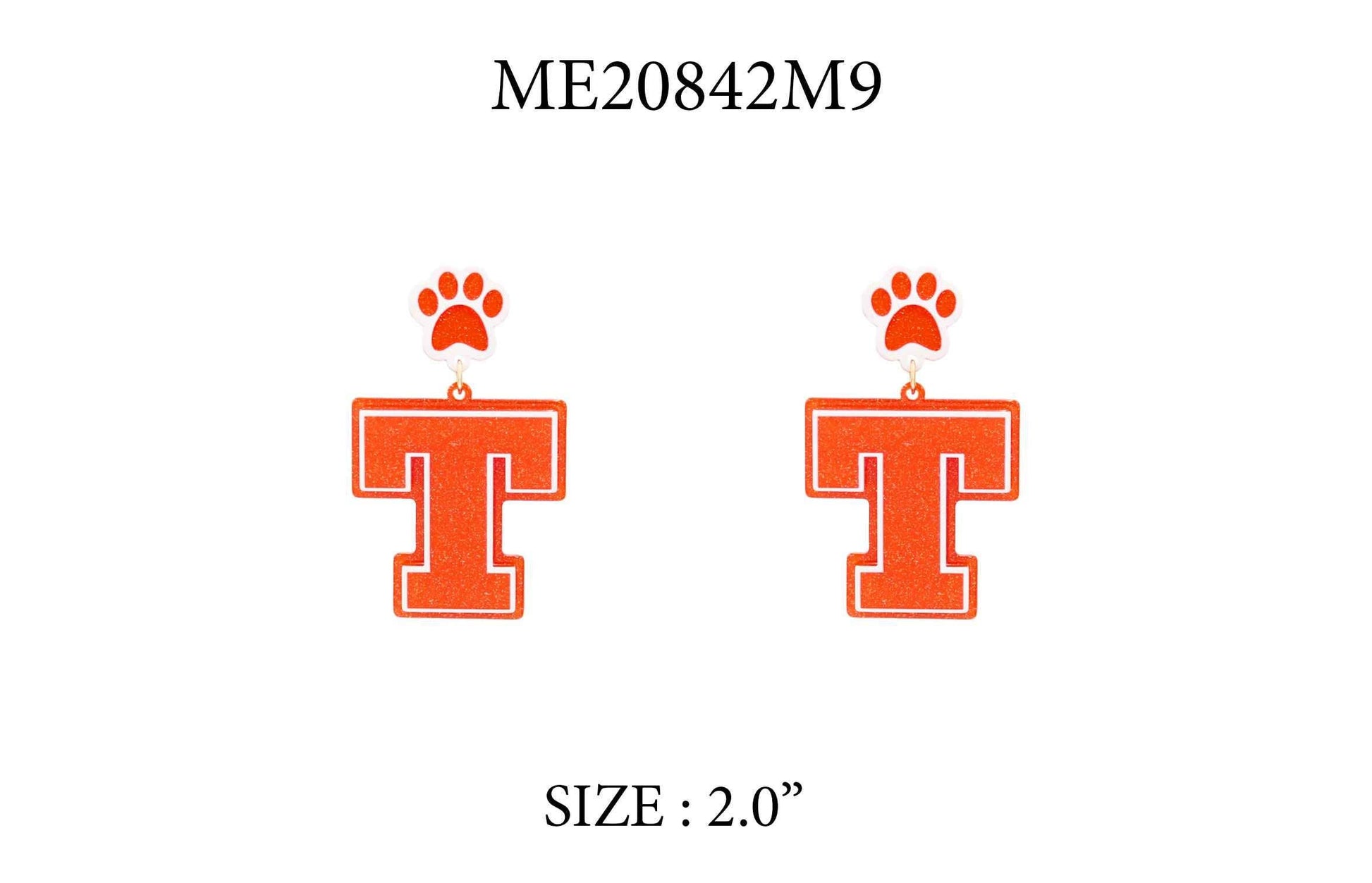 Step into the latest trend with Orange and White T 2" Acrylic Gameday Earrings. These dangle earrings are the perfect addition to your game day outfit or any casual look. Showcasing a vibrant mix of orange and white, they are sure to grab attention and compliments.