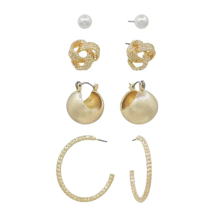 Pearl Stud and Gold Stud/Hoop Set of 4 Earrings