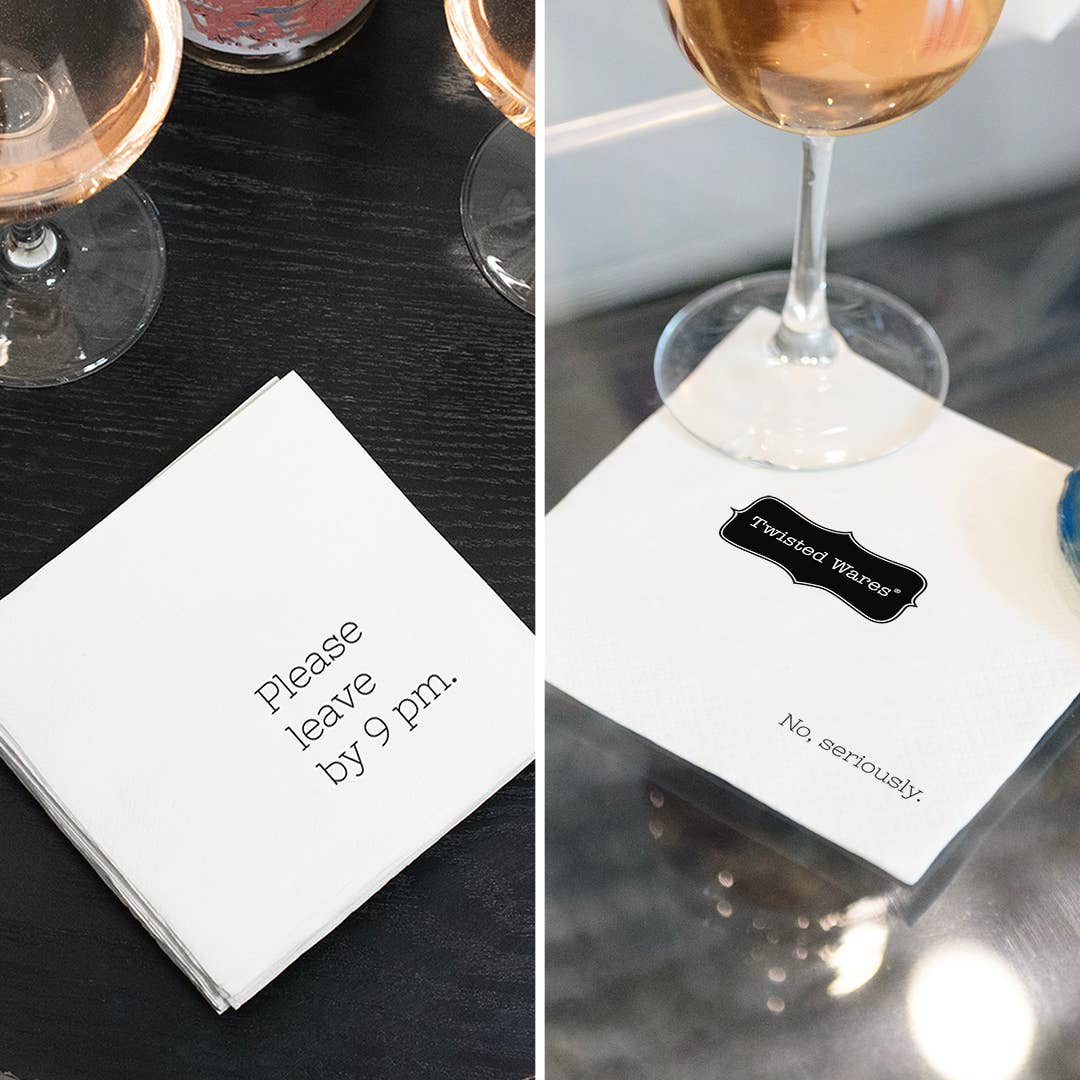 "Please Leave By 9p" Funny Cocktail Beverage Napkins