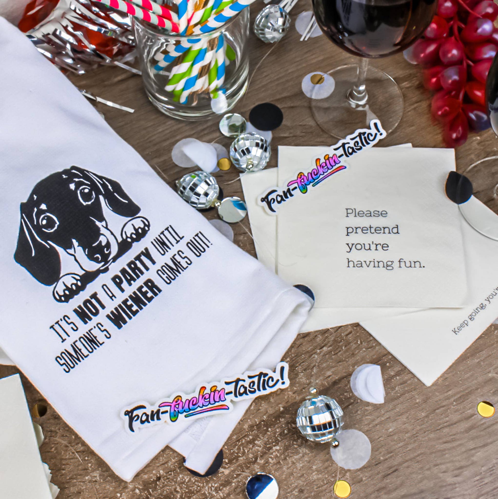 - "Please Pretend You're Having Fun" cocktail party napkins.