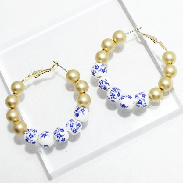 Porcelain ceramic bead hoop earring : Gold