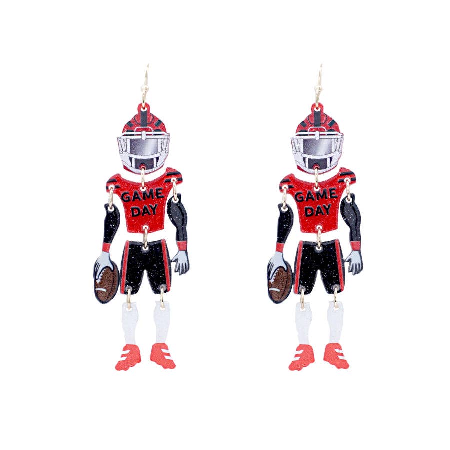 - Introducing the Red and Black Gameday Football Player 2.75" Earring with Movement.