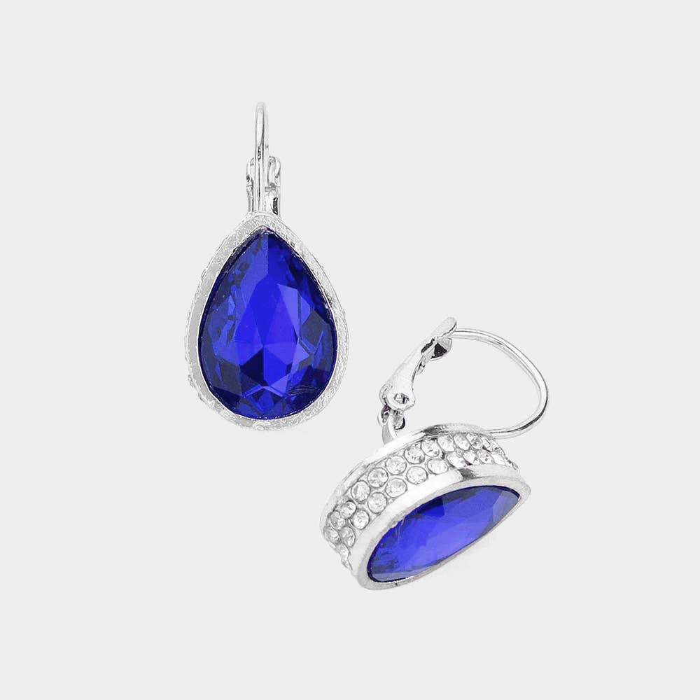 - Rhinestone Embellished Teardrop Stone Lever Back Evening Earrings