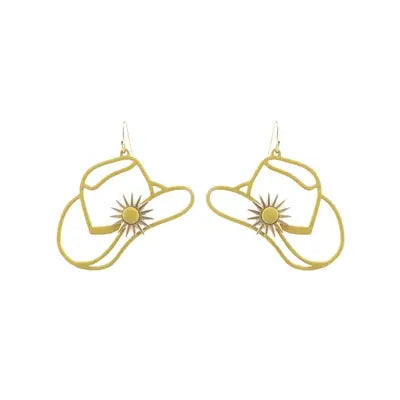 - Step up your fashion game with the Deep Yellow Color Coated Cowboy Hat 1.25" Earring.