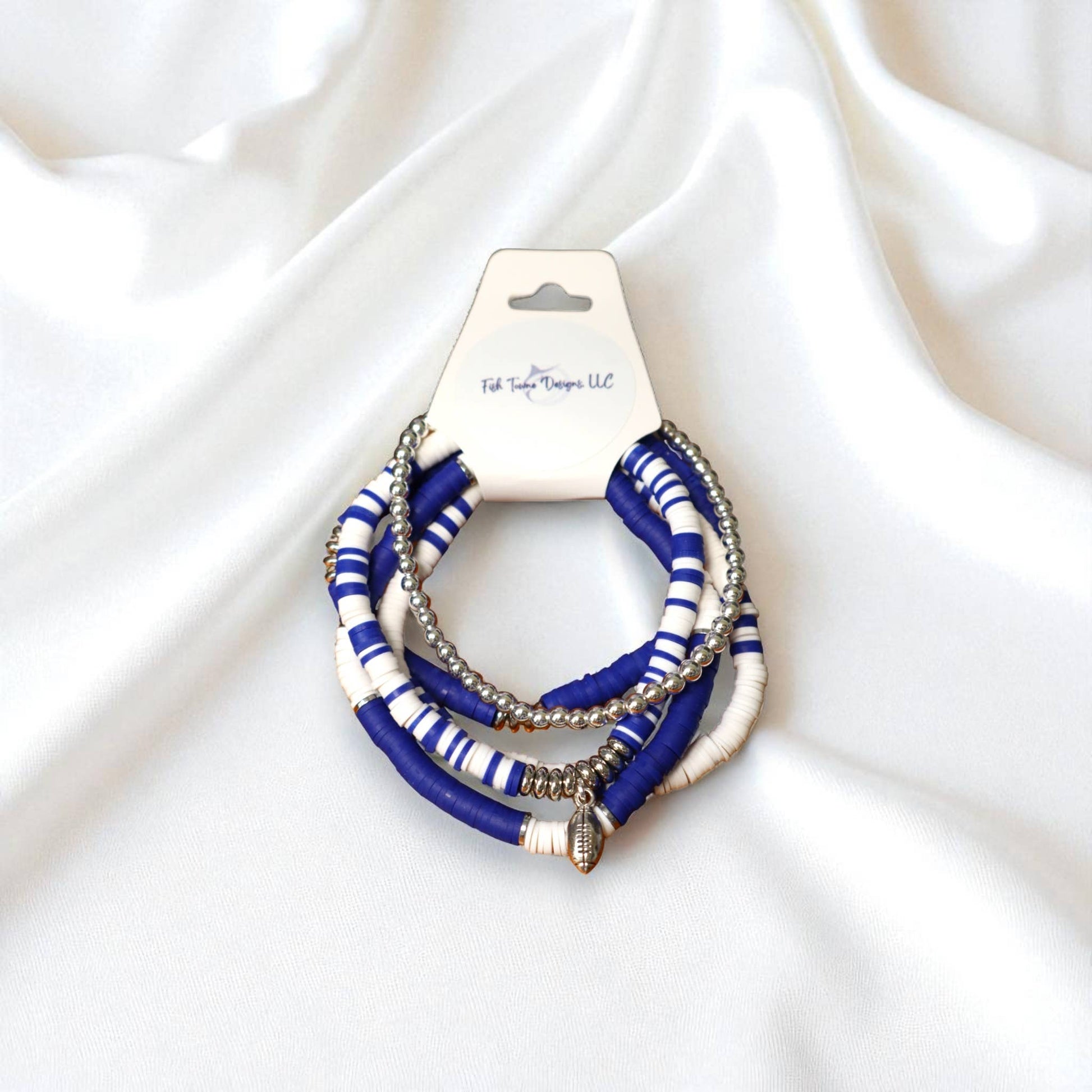 Royal Blue and White Game Day Bracelet Stack: Medium (7 inch) / Football
