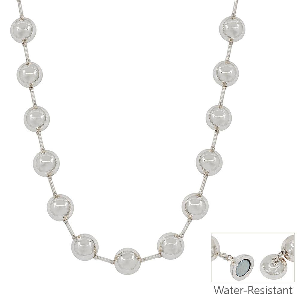 Water Resistant 14MM Silver Beaded with Silver Chain 18" Necklace