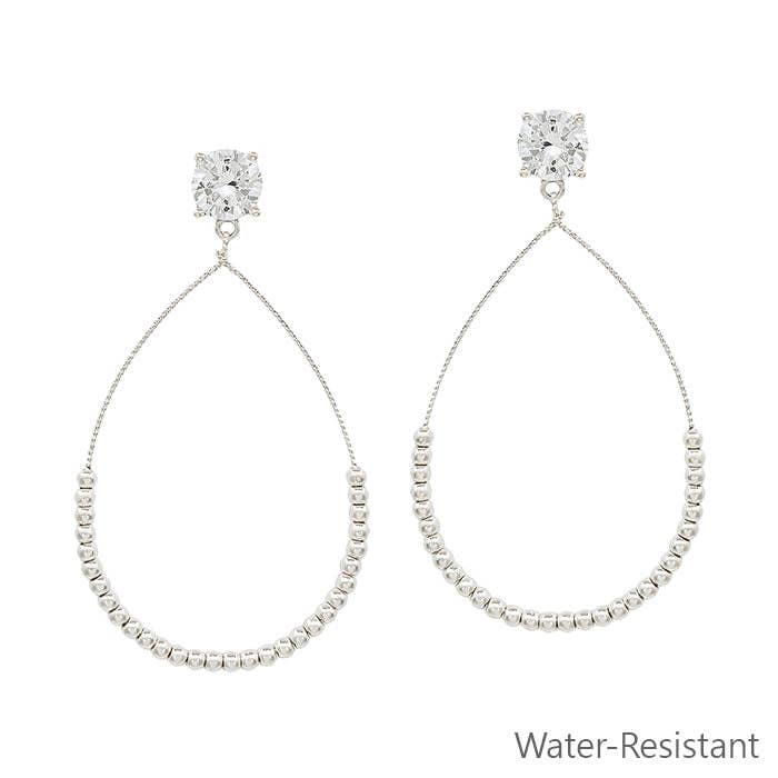 Water Resistant Crystal Stud with Silver Beaded Teardrop 2" Earring