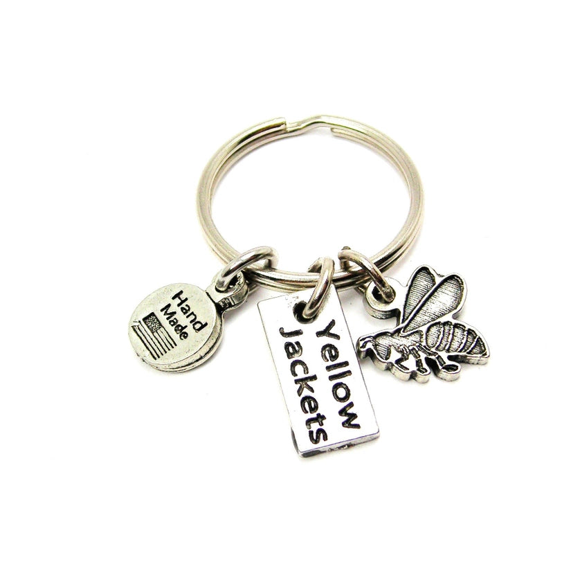 - One of our 100% genuine American pewter charms hung from a steel standard size key ring.
